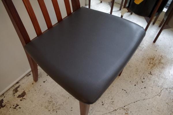 チェアの経年でのダメージが出やすい個所は接合部。ぐらつきやガタツキもチェック済みです。座面は新品に張り替えました。