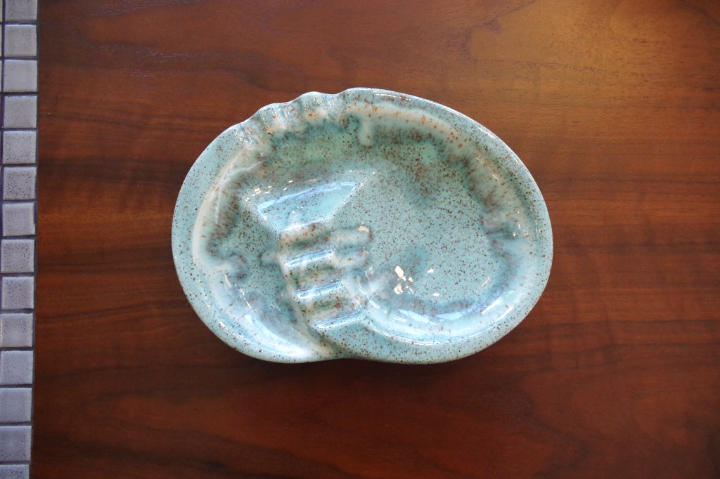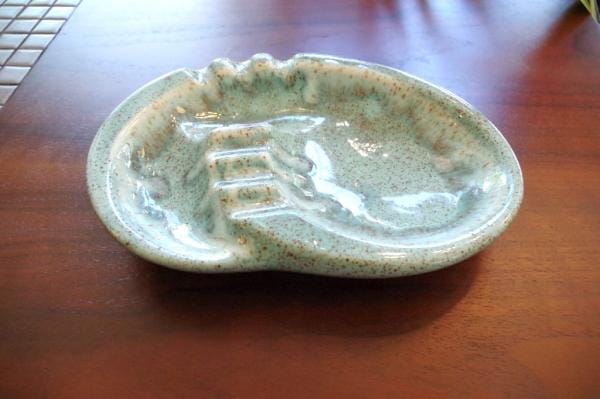 ポタリーアシュトレー。自由な形と色使いがカリフォルニアポテリーらしい陶器のトレー。