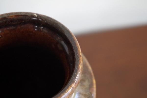 寸胴型で首がきゅっとくびれて口が広がったオーソドックスな形も好印象。釉薬のデザインとのバランスがよく、オブジェとしても成立する佇まいになっています。