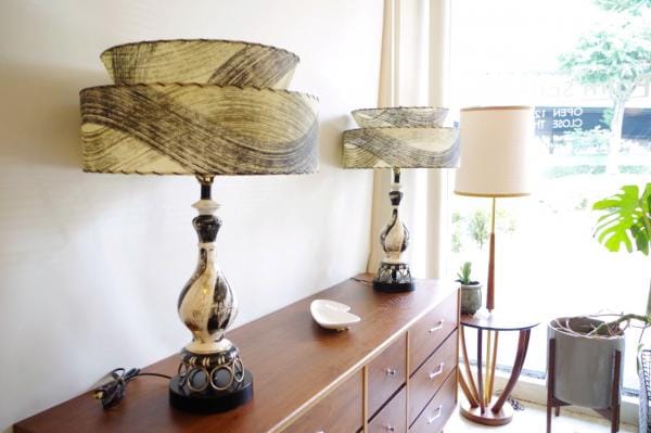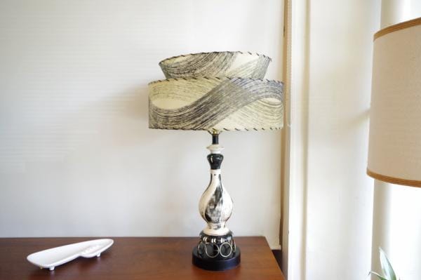 シェードはファイバーグラスのダブルシェードでこちらも50’sらしさ抜群。シェードもしっかりモノトーン+ゴールドで統一されています。点灯するとファイバー部分が陰影になるのも魅力。