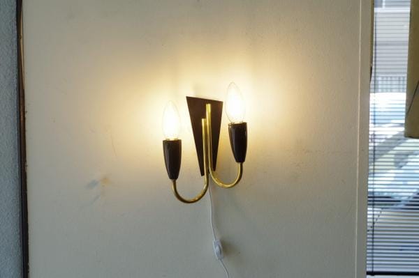 ヨーロッパミッドセンチュリーらしい上品さが漂うこちら。黒いソケットやベースとブラスアームの組み合わせがモダンです。