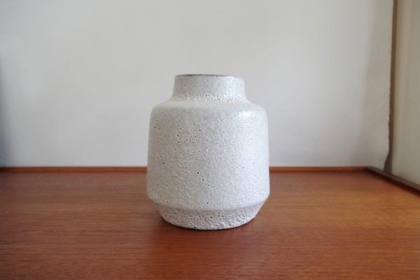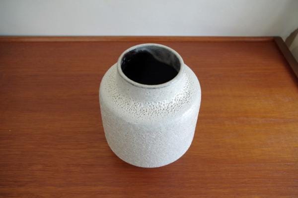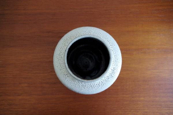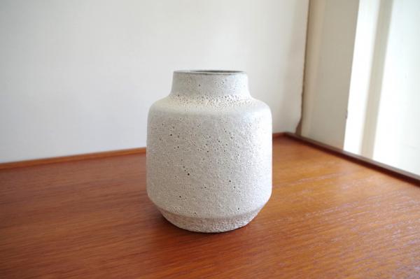 ポタリーベース。白い釉薬が表情豊かな陶器でできた花びん。