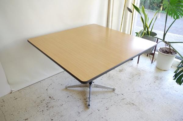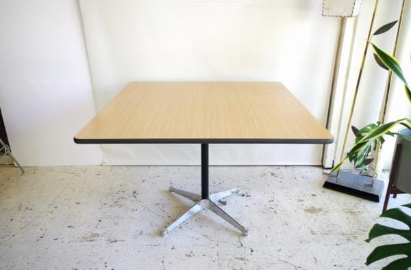 ハーマンミラー社製スクエアテーブル。天板はオーク調メラミントップ、ベースはコントラクトベースのスクエアテーブルです。