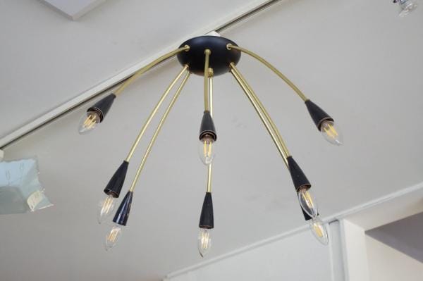 8灯のモダンシャンデリア。クモの脚のようにアームが広がった姿から、スパイダーランプとも呼ばれます。