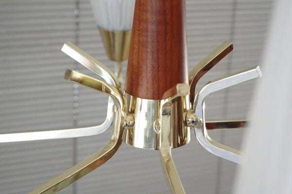 真鍮×チーク×フロストガラスの組み合わせがとても上品。アームの基地になっているウッド部分が柔らかさとモダンさを感じさせてくれます。