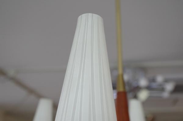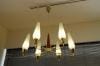 モダンシャンデリア。6灯のフロストガラスがキャンドルのように上をむいた天井付けのランプ。