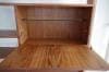 ビューロー内のガラス棚は取り外し可能。シェルフの違い棚も上下を入れ替えたり外すことができます。下部の扉内は固定棚が一枚ついていて、引き出し中段は仕切り板が2枚ついています。