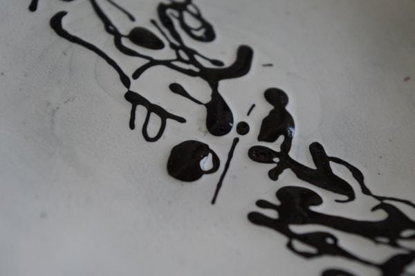 白地に黒の模様がかっこいいこちら。絵具を垂らしたようなぷっくりとした模様は象形文字や先住民の伝統的なアートのようで印象的です。