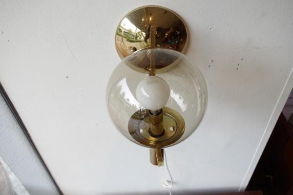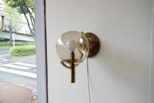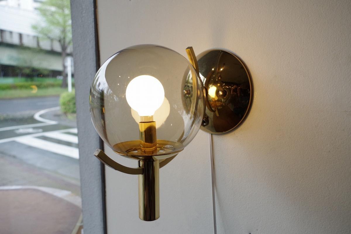 スモークガラスブラケットランプ。まるいボール型のガラスがかわいいウォールランプ。