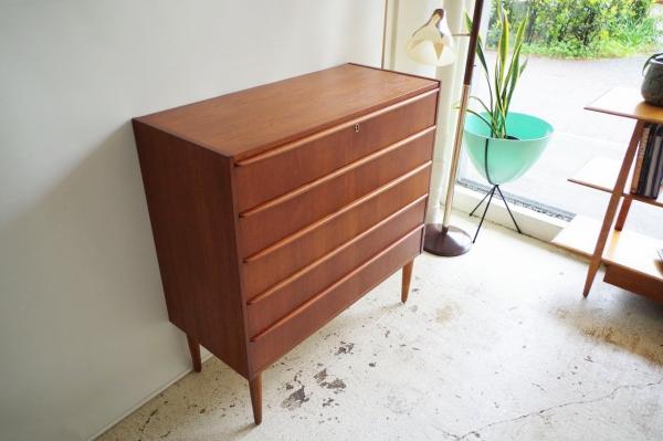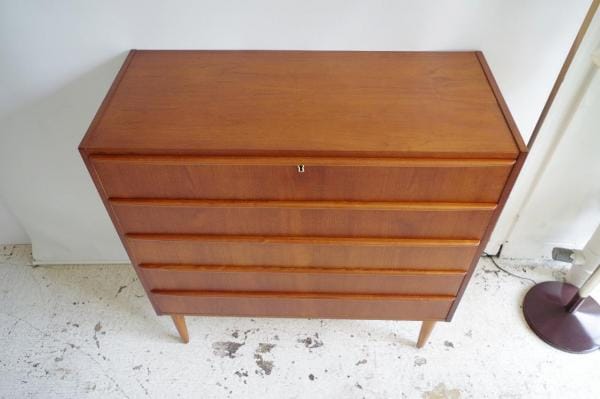 チーク製5段チェスト。直線ラインのバランスが綺麗なデンマーク製チェスト。