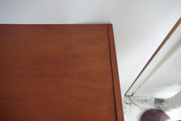 幅いっぱいに付けられた取っ手は滑らかなラインでチーク材の風合いがよく感じられます。