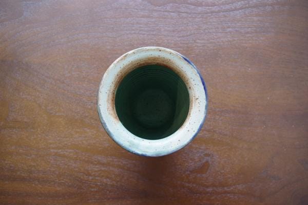 ブルー部分には掘り込みの模様も入っていたり、それぞれの色が重なった部分もあったりとどこをとっても表情豊か。入れ込む植物や季節にあわせて向きをかえるのも面白そう。