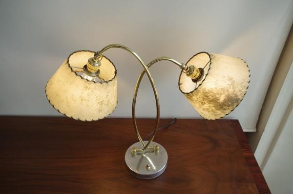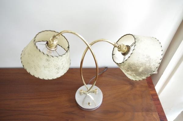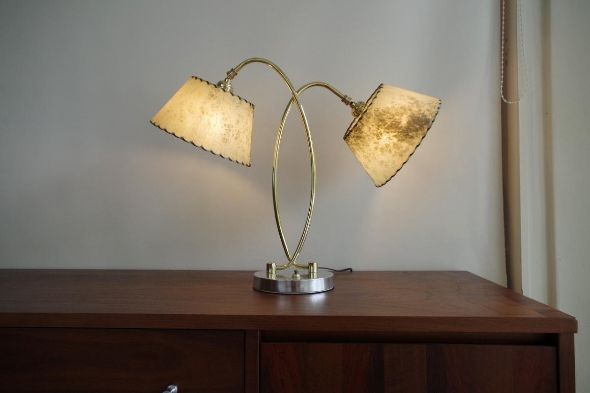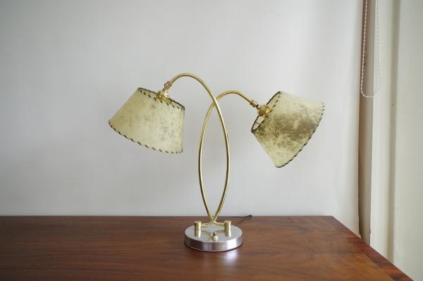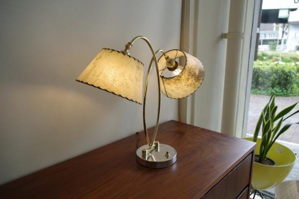 2シェードテーブルランプ。少し互い違いになったシェードの位置が絶妙なバランスのテーブルランプ。