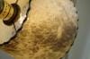 そのファイバーグラスからの柔らかい光に癒されます。シェードはまだら模様で表情豊か。点灯すると月面や内側から月光に照らされた雲のようなドラマティックな姿に。