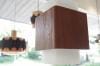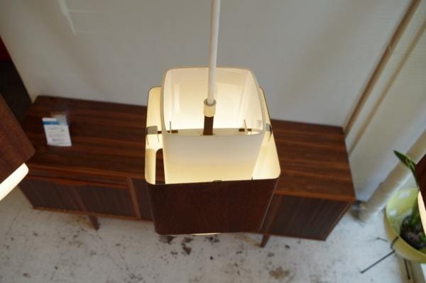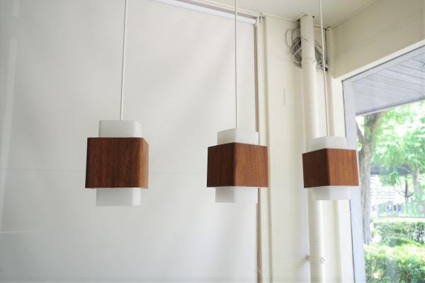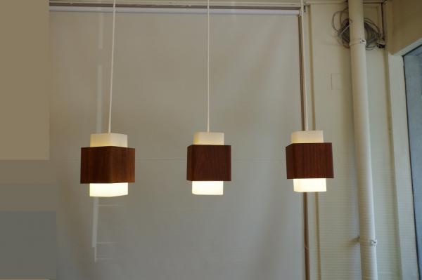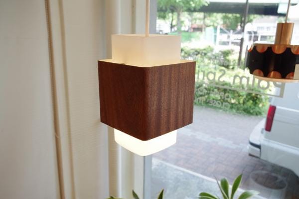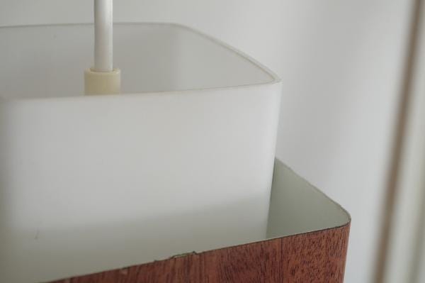 ペンダントランプ。ウッドとフロストガラスの組み合わせがモダンな四角柱型ランプ。