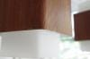 点灯するとガラスを通った優しい光が雰囲気抜群。消灯時はホワイト×ウッドの上品な佇まいで昼夜違った表情を見せてくれます。