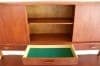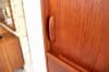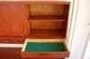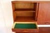 キャビネット部は引き違いの扉が3つと小さな引き出しが3つ。引き違い扉には可動棚が一つづつ入っていて、小さな引き出しにはフェルトが施されています。