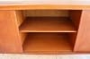 サイドボード部は引き違いの扉が3つで、左側は縦に分割された引き出しが4つあります。真ん中と右側は可動棚が一つづつ入っています。