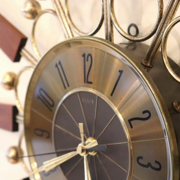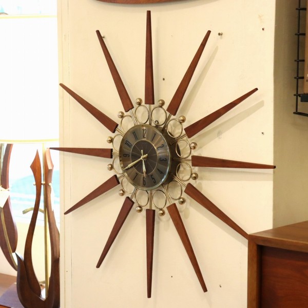 エルジン社製スターバーストウォールクロック。サンバーストやスターバーストと呼ばれるこちらの時計は、アメリカのミッドセンチュリーのインテリアとして欠かせないアイテム。