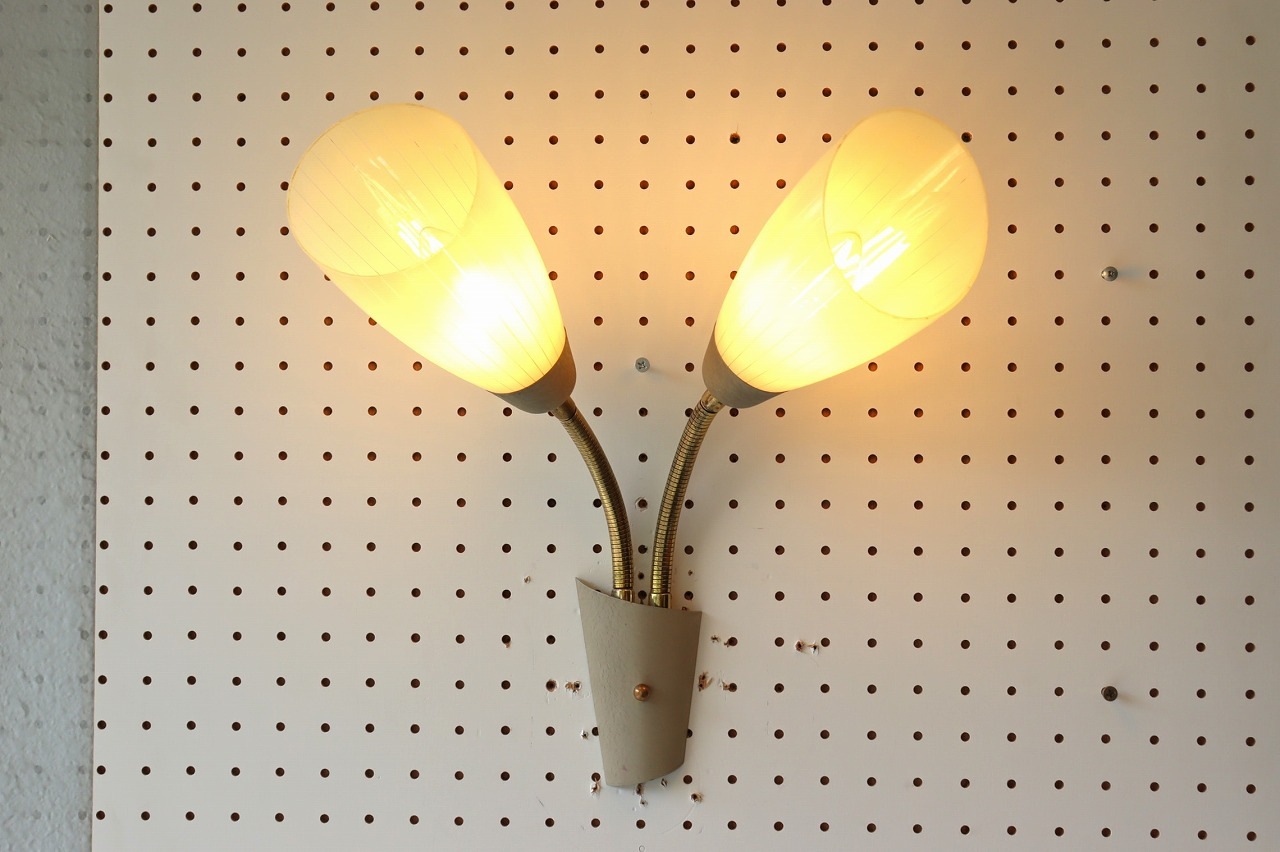爪のような形のガラスシェードはドイツビンテージによく使われています。シェードにはストライプ柄が入っているので、上品でモダンな雰囲気。