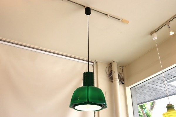 グリーンガラスペンダントランプ。ガラスで作られたシェードのランプです。
