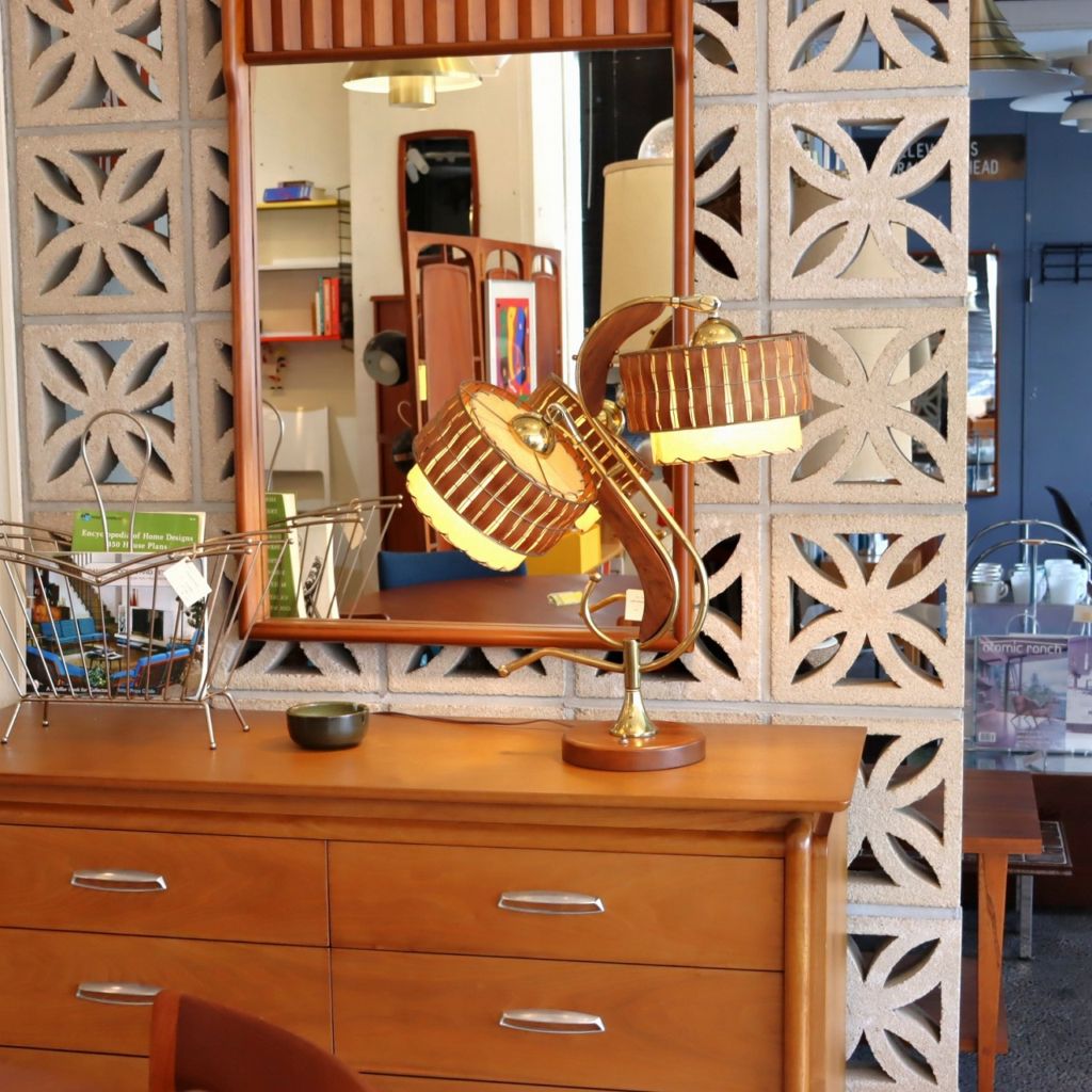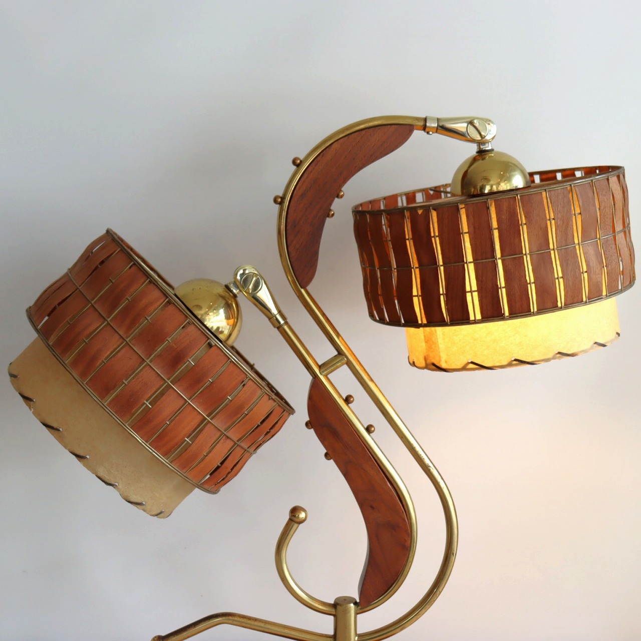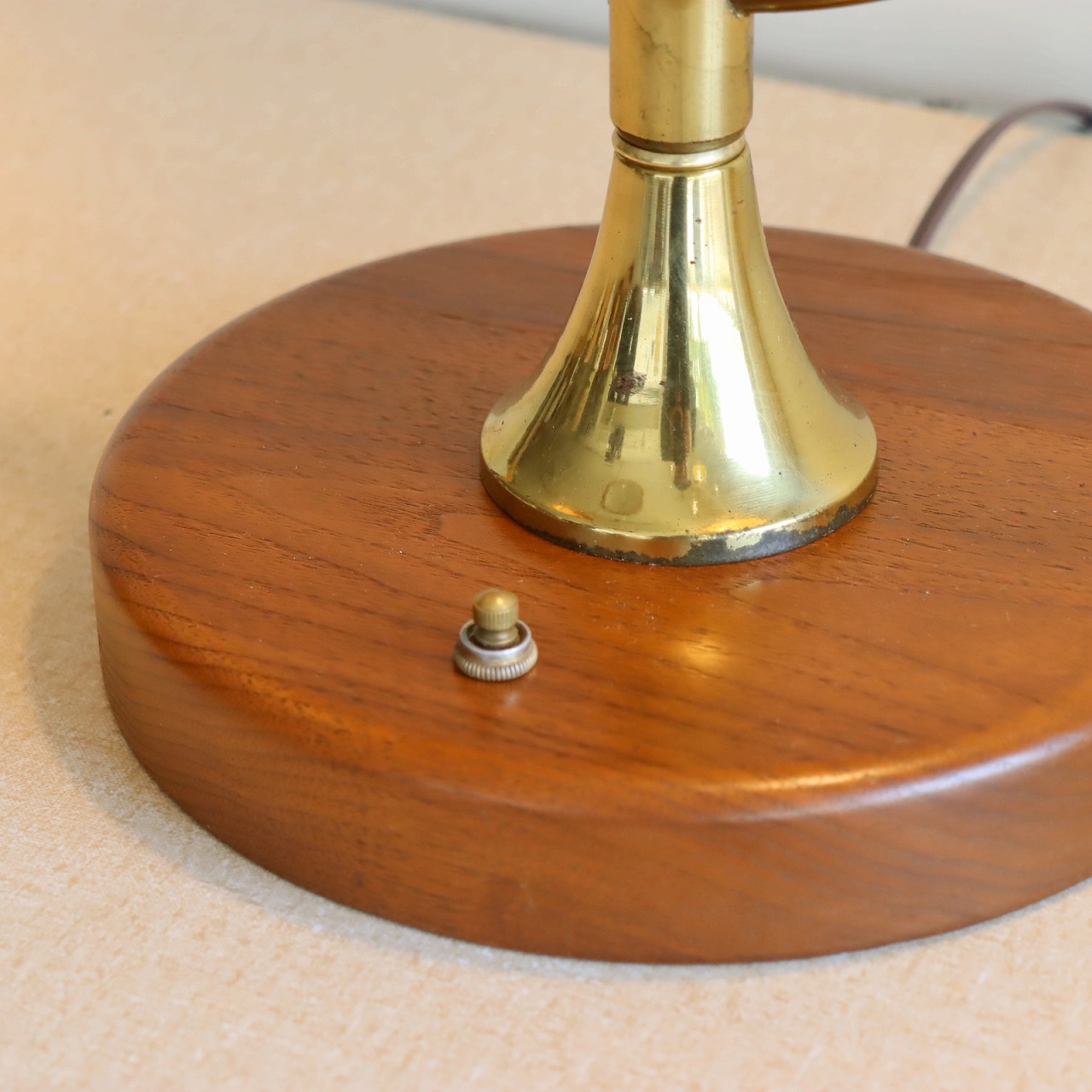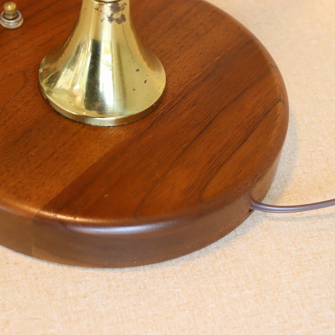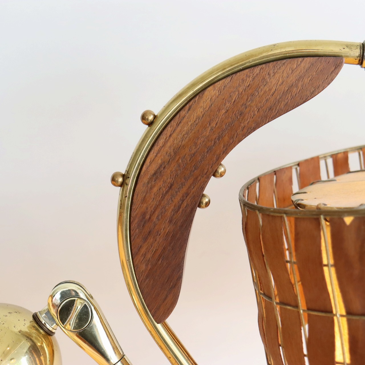 シェードはダブルシェード。FRPのベージュのシェードにウッドパーツを施したシェードが重ねられています。シェードとの接合部にはゴールドの球体の飾りがつけられており、50-60年代の特徴がアクセントとして目を引きます。