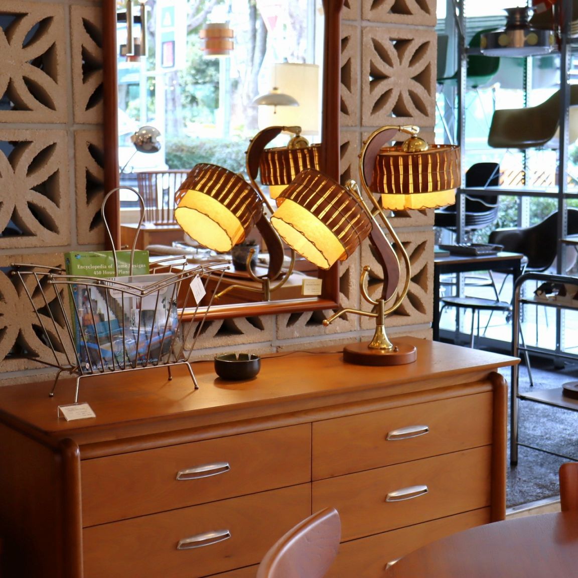 こちらのランプは台座から二手に分岐した支柱がそれぞれ異なる独特の曲線を描いたデザイン。根から茎、花が開いたような有機的な美しさが感じられます。
