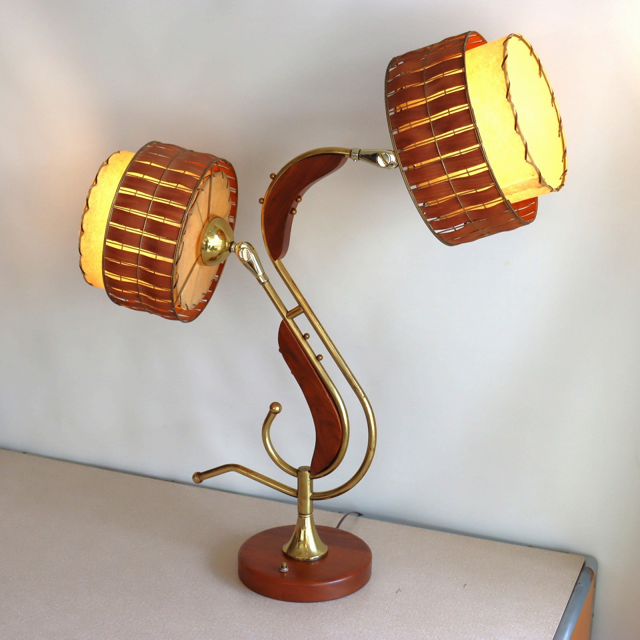 マジェスティックランプ。2灯タイプでダブルシェードのテーブルランプ。
