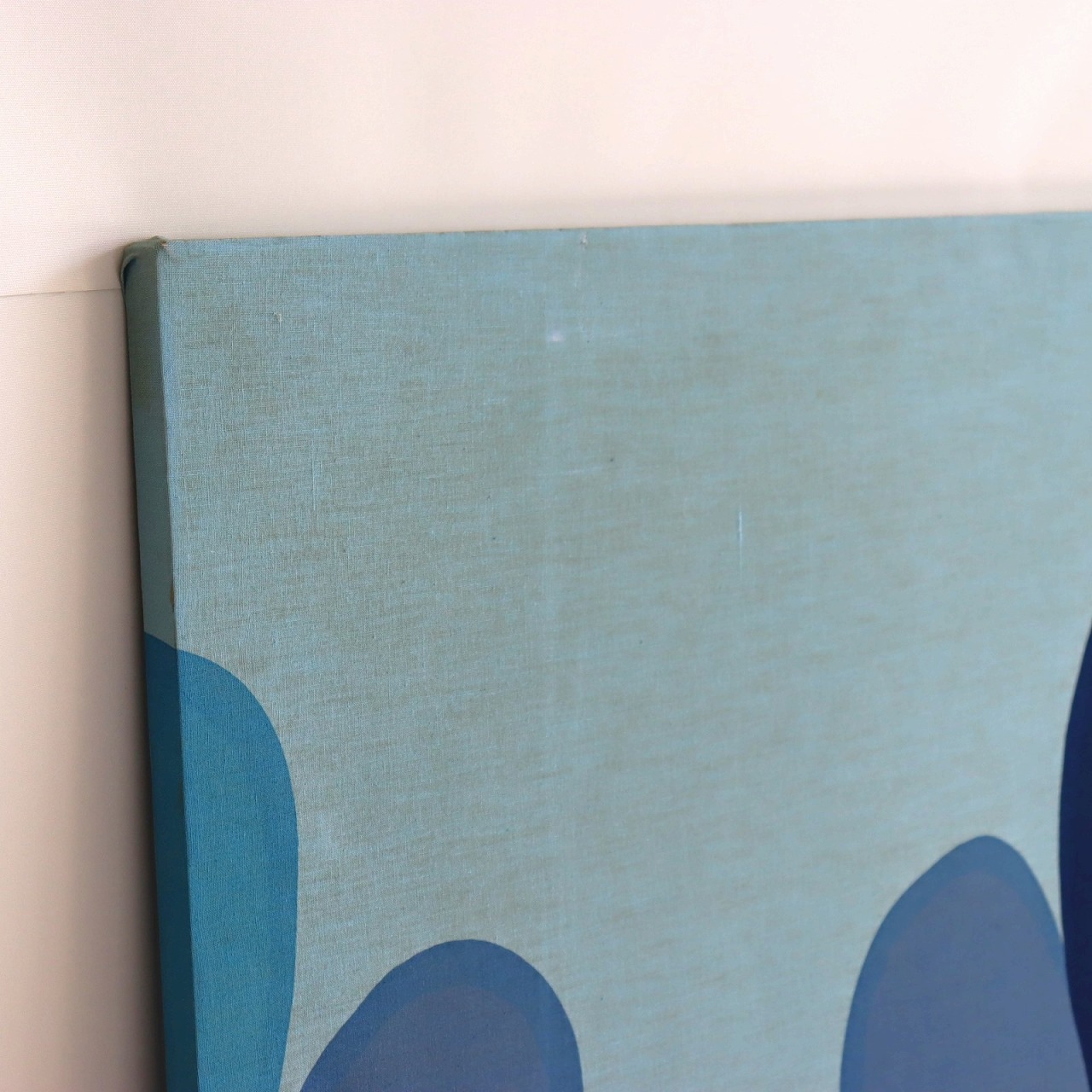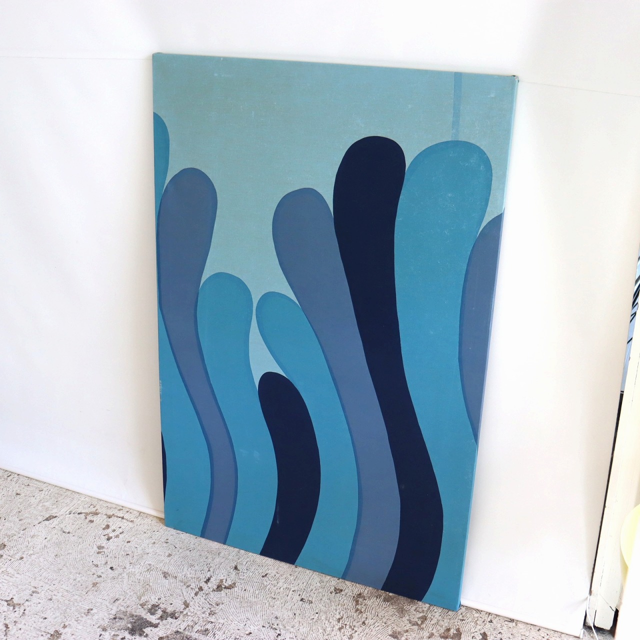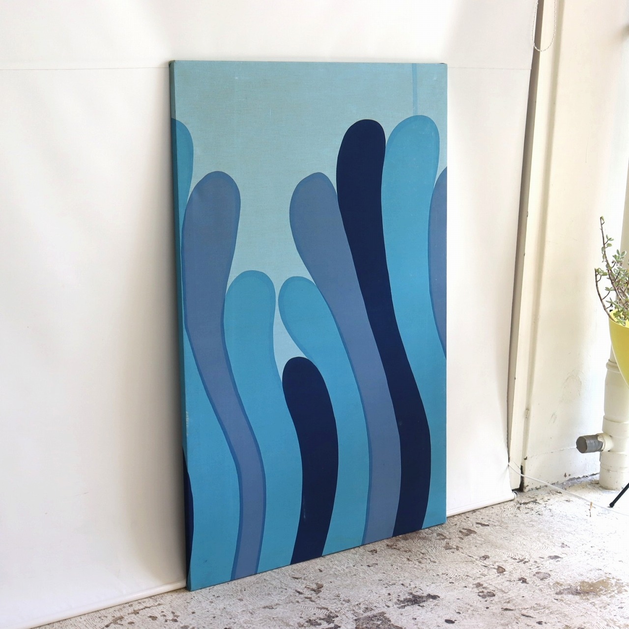 抽象的なデザインなので、上下逆にしたり、横に飾っても良さそう。同じブルーのインテリアや雑貨と合わせても良いですね。