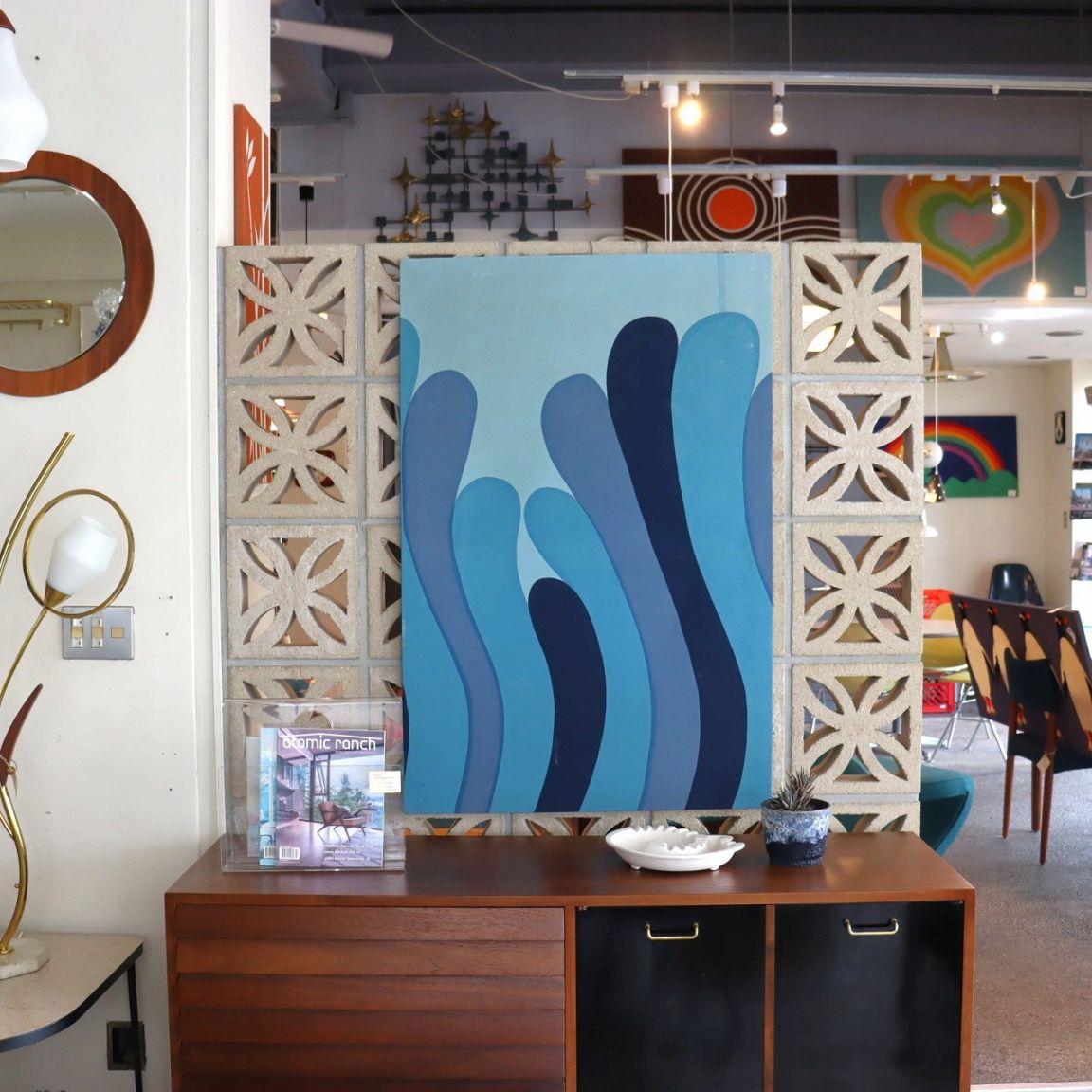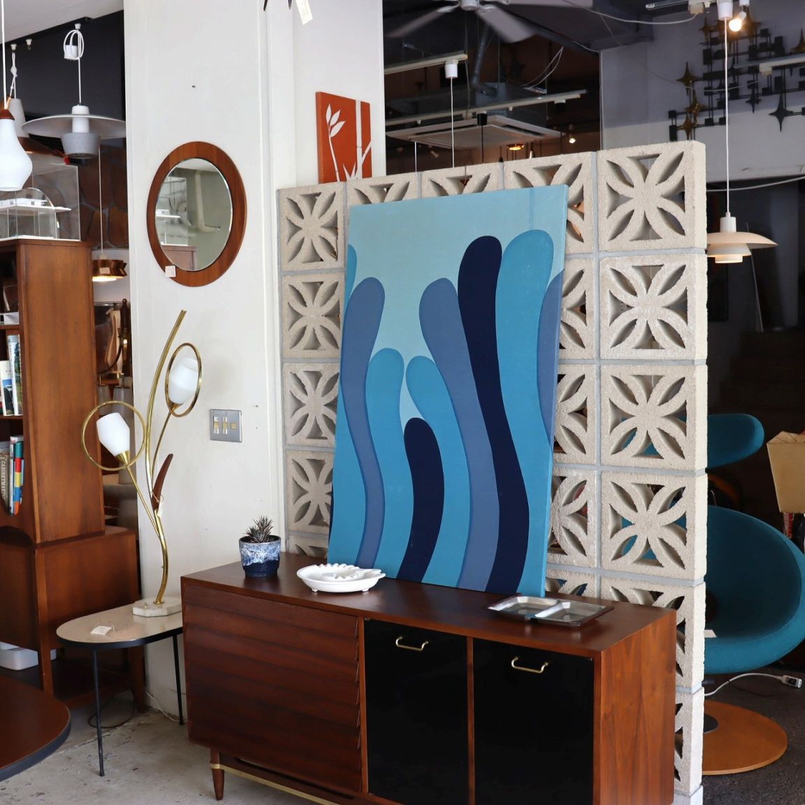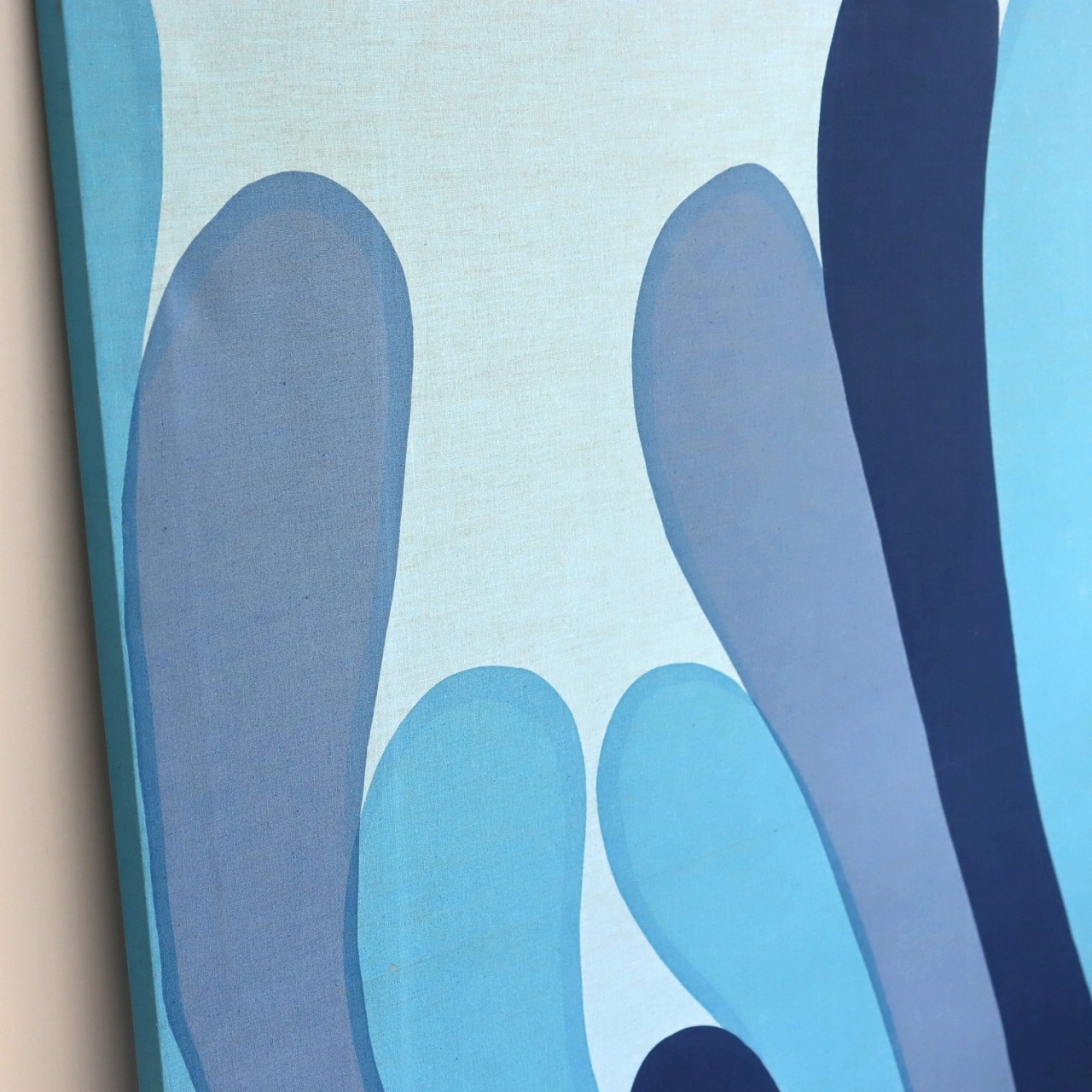 抽象的なデザインなので、上下逆にしたり、横に飾っても良さそう。同じブルーのインテリアや雑貨と合わせても良いですね。