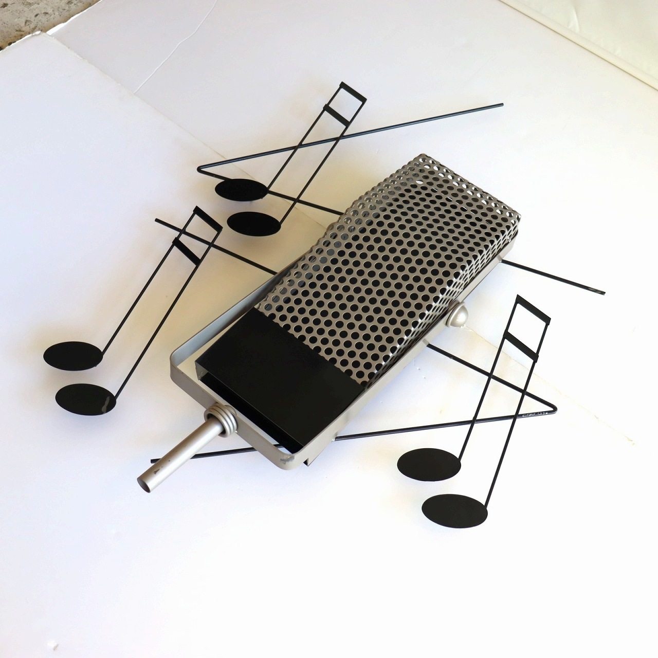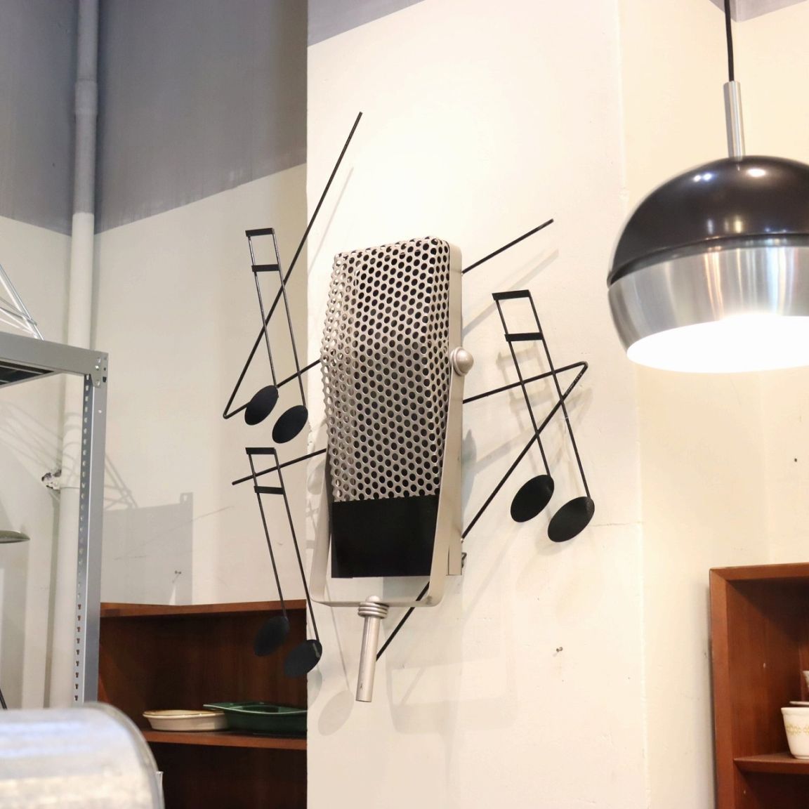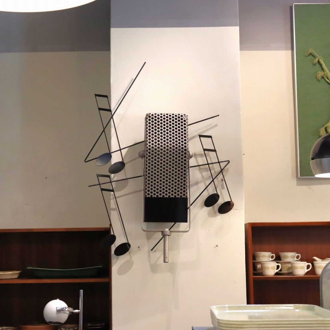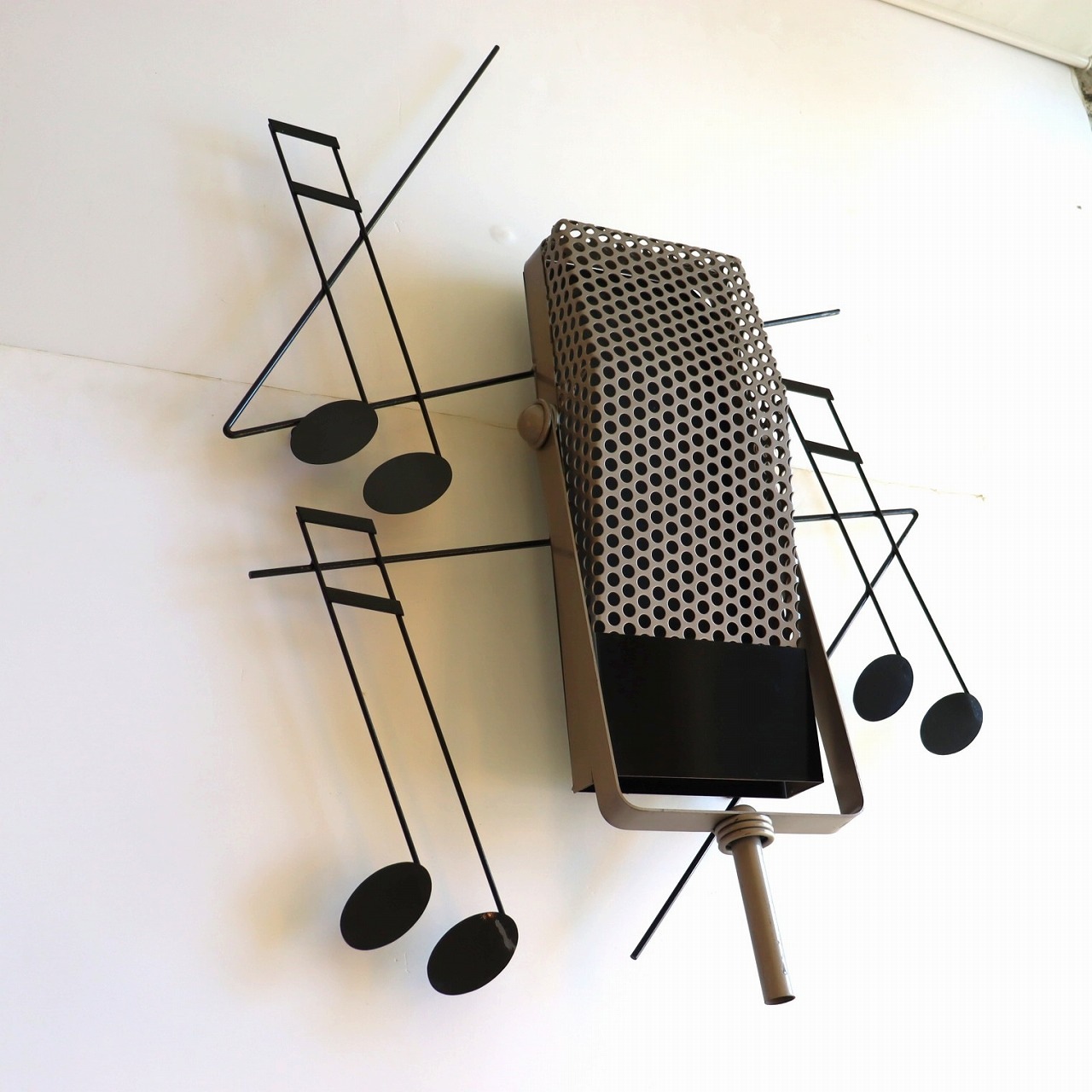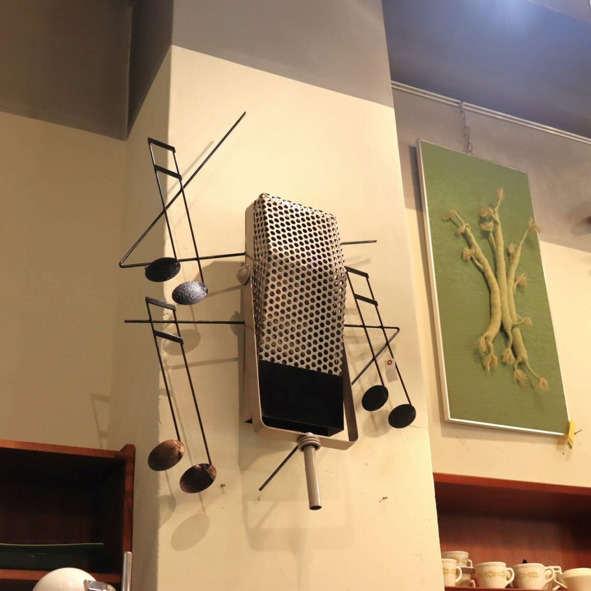 カーチス・ジェレ ウォールスカルプチャー。マイクと音符がモチーフの作品です。