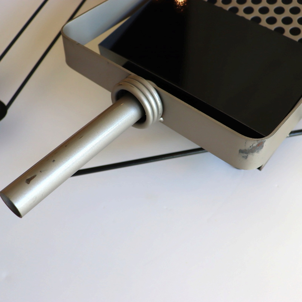 カーチス・ジェレといえば風景を切り取ったような作品が多いですが、こちらは音がテーマの作品です。マイクは1970年代ごろのラジオマイク。3つの音符が周りを飾り、軽快な雰囲気です。