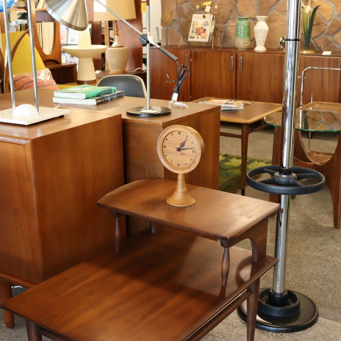 テーブルクロック。スタンド付きの木製のテーブルクロックです。