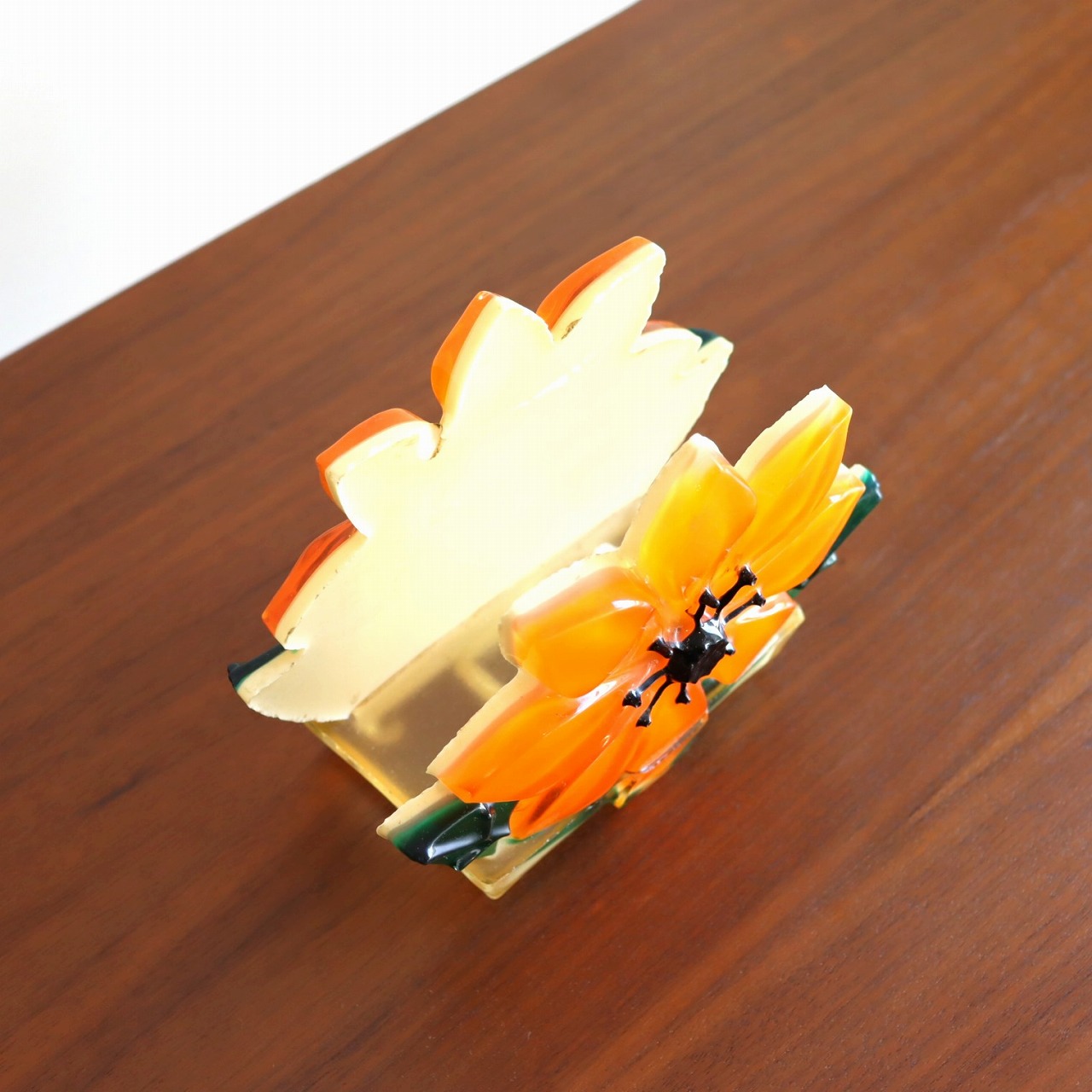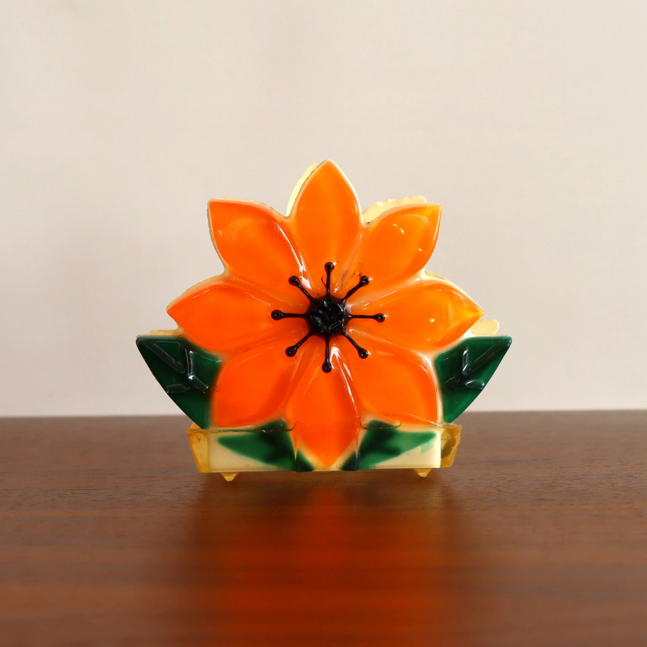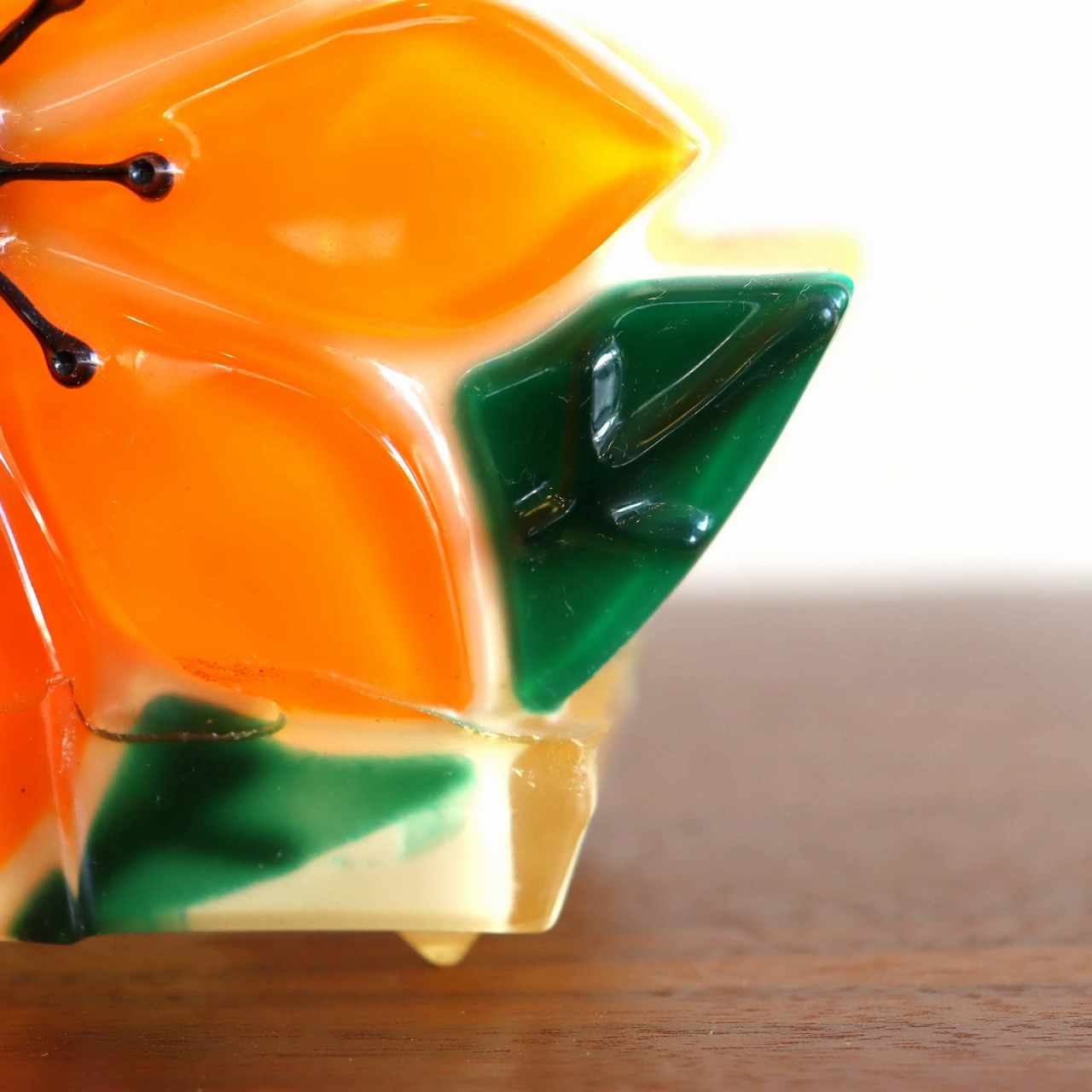 オレンジの花は明るく綺麗です。日光や照明の灯りを受けるとより質感が強調されて艶やかに。