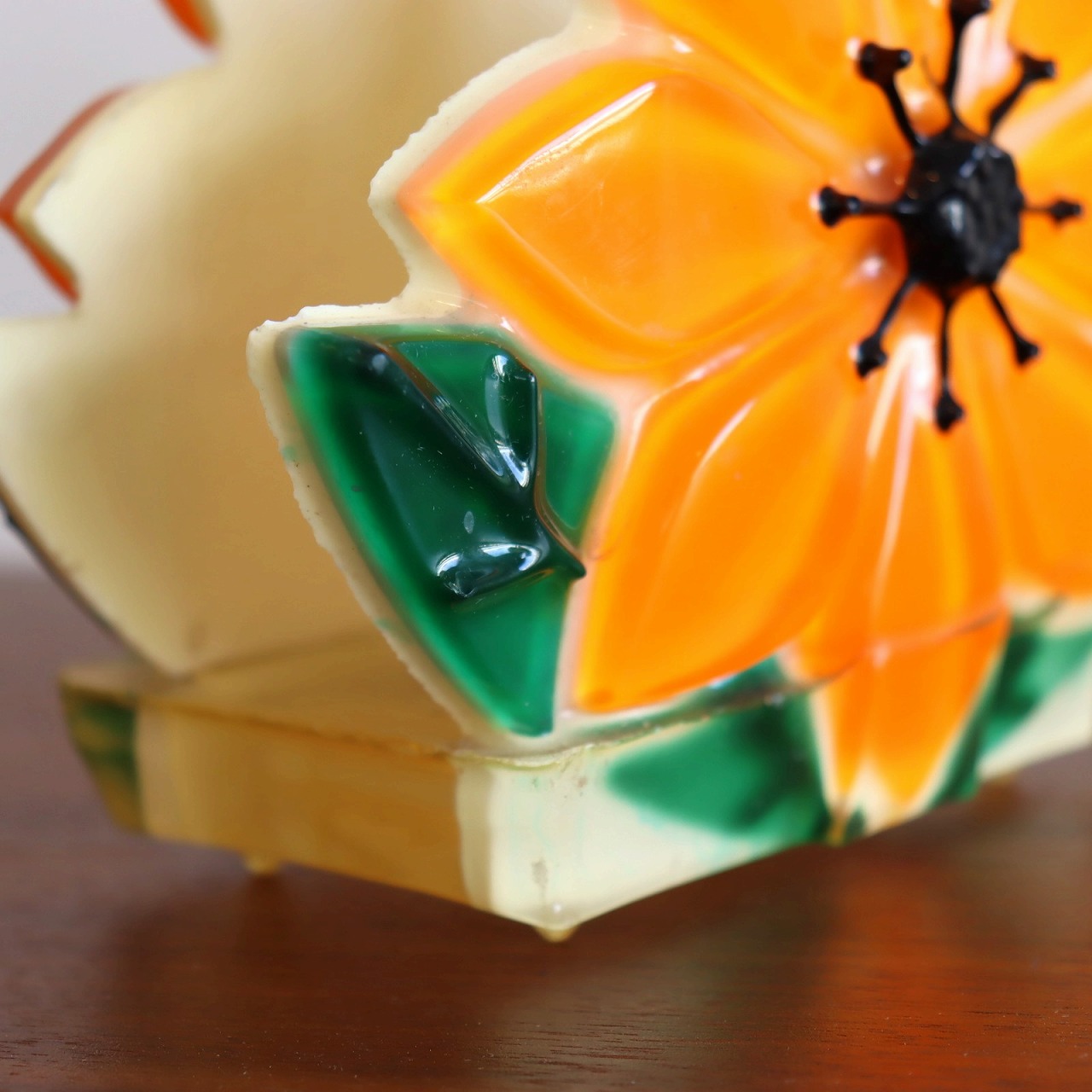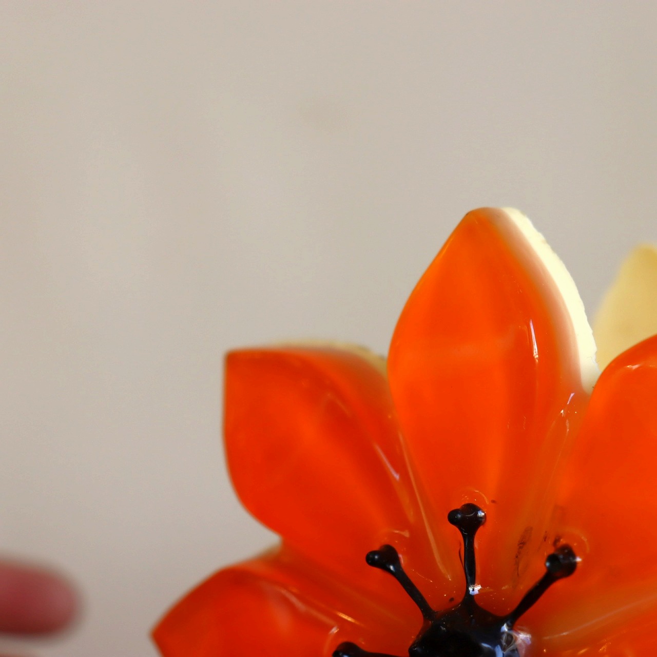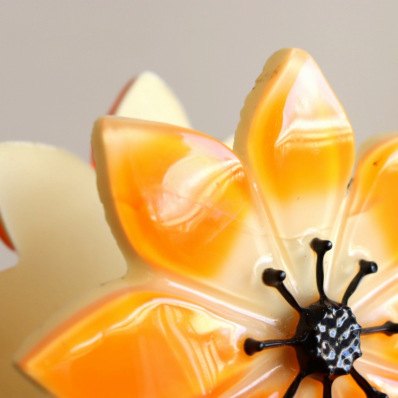 オレンジの花は明るく綺麗です。日光や照明の灯りを受けるとより質感が強調されて艶やかに。
