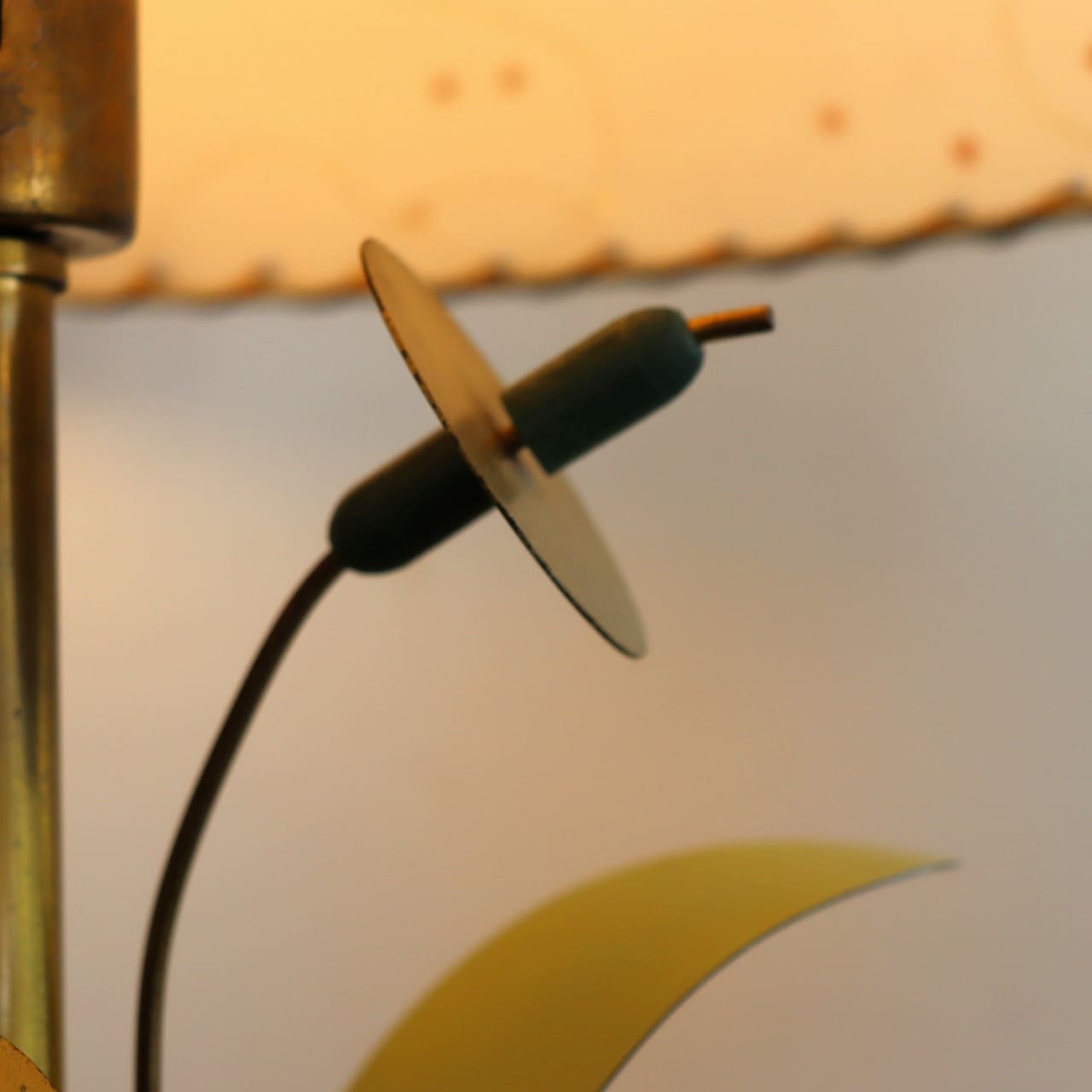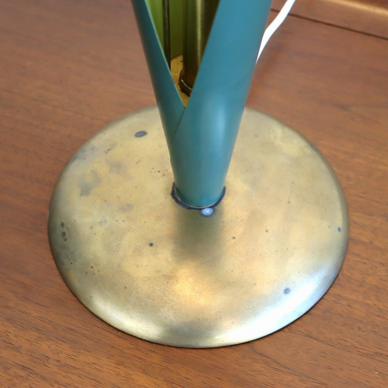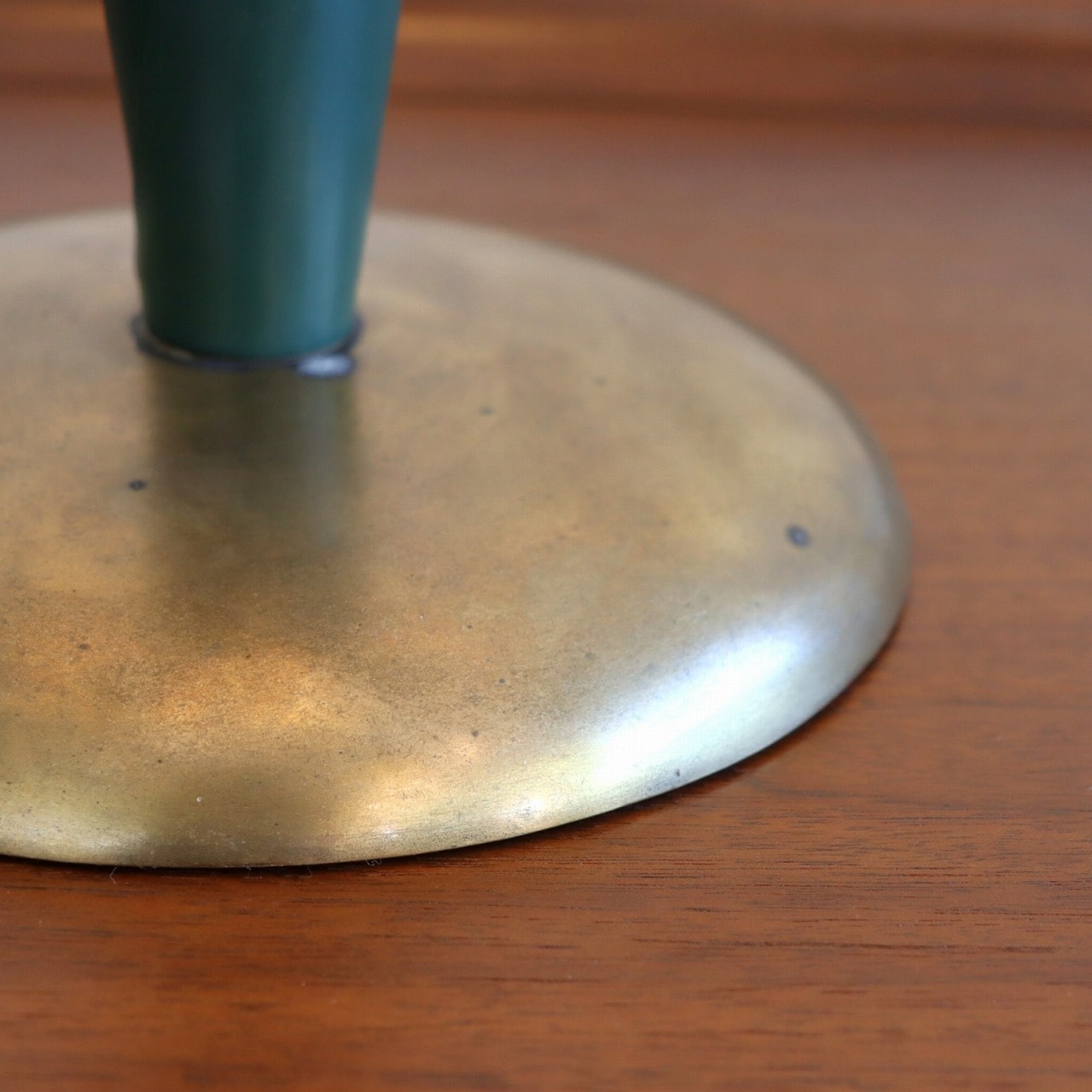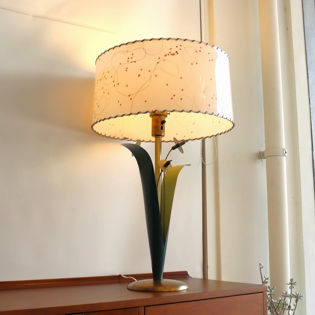 ゴールドは灯りに照らされるとよりきらめきを増して輝きます。グリーンの塗装が施された茎や葉などでバランスのいいミッドセンチュリーらしい華やかさがあります。台座は中央が高くなった円形なのでまるで土から生えているようですね。