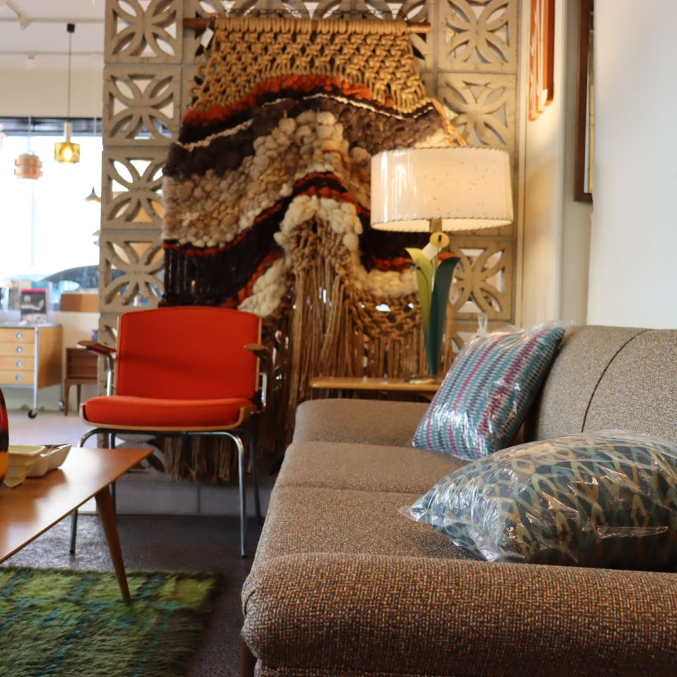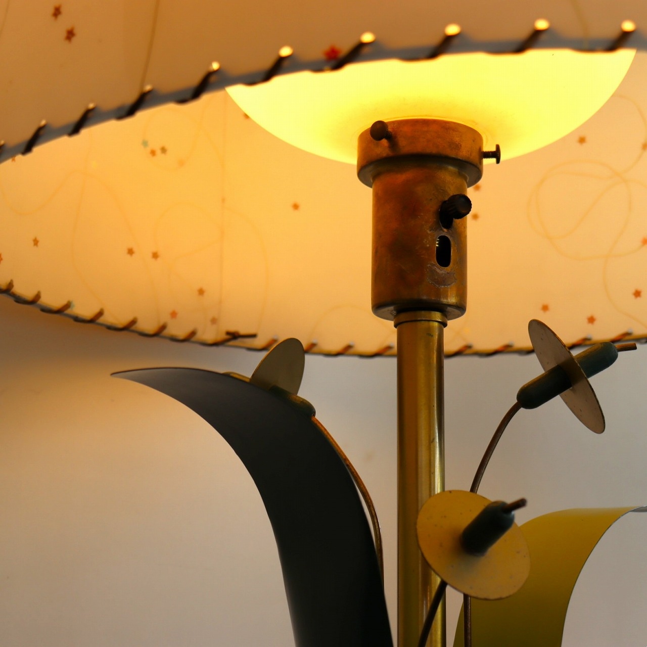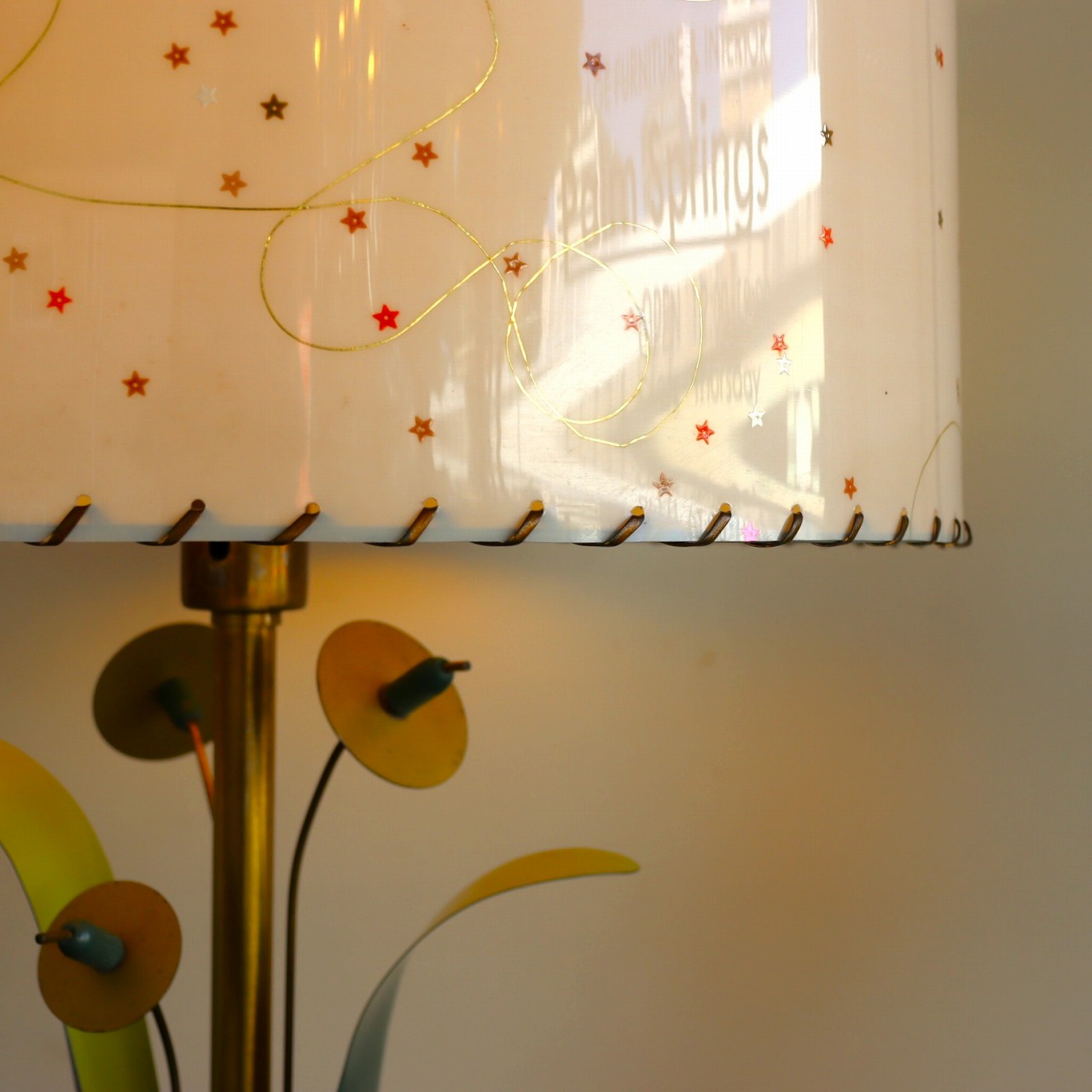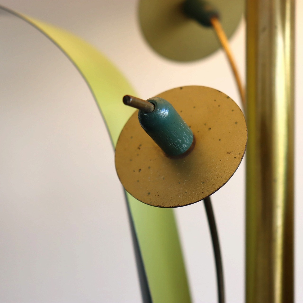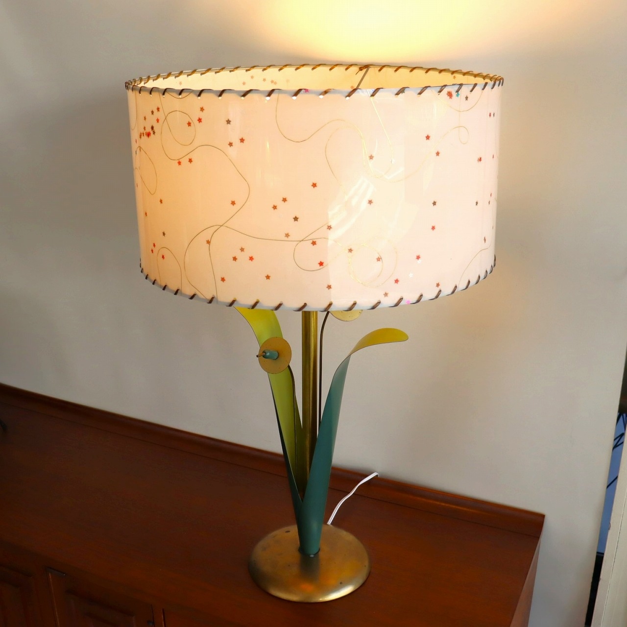 ゴールドは灯りに照らされるとよりきらめきを増して輝きます。グリーンの塗装が施された茎や葉などでバランスのいいミッドセンチュリーらしい華やかさがあります。台座は中央が高くなった円形なのでまるで土から生えているようですね。