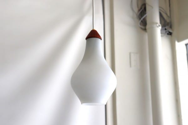 デニッシュモダンのペンダントランプ。ホワイトガラスとチークの組み合わせがデンマークらしいランプです。
