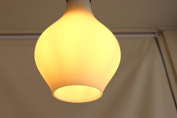 シェード全体がガラスなので、電気をつけると全体が明るく点灯します。フロストガラスならではの柔らかい灯りは落ち着いた空間を演出してくれそう。