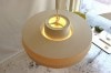 アートピースのような存在感のある大きさですが、圧迫感は無く温かな雰囲気。電球の灯りがシェードに反射して、隙間から柔らかく温かい光が見られます。シェード上部は少し隙間が空けてあり、電球の灯りがうっすらと漏れだす仕組みになっています。