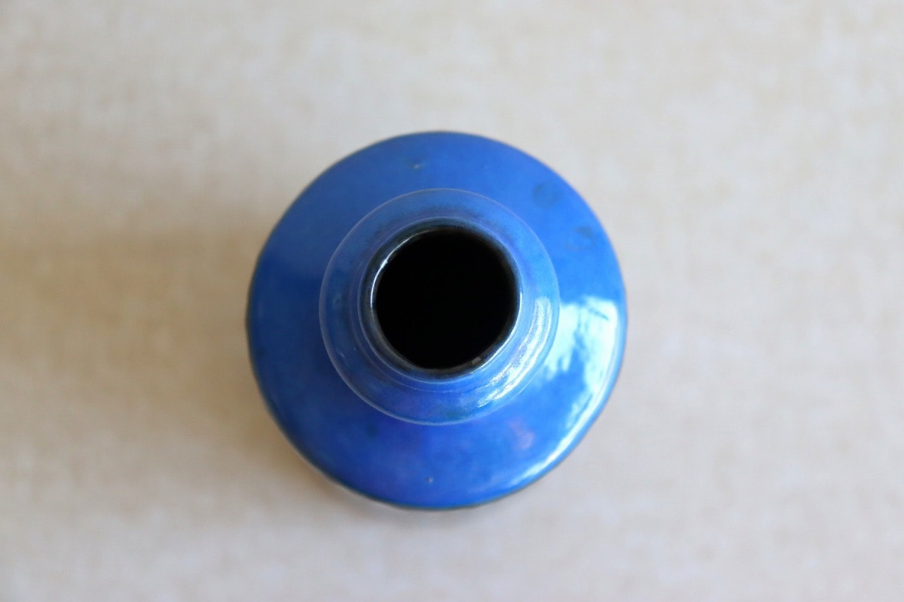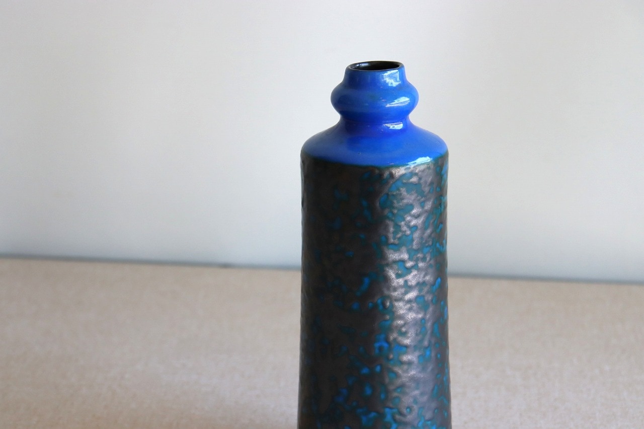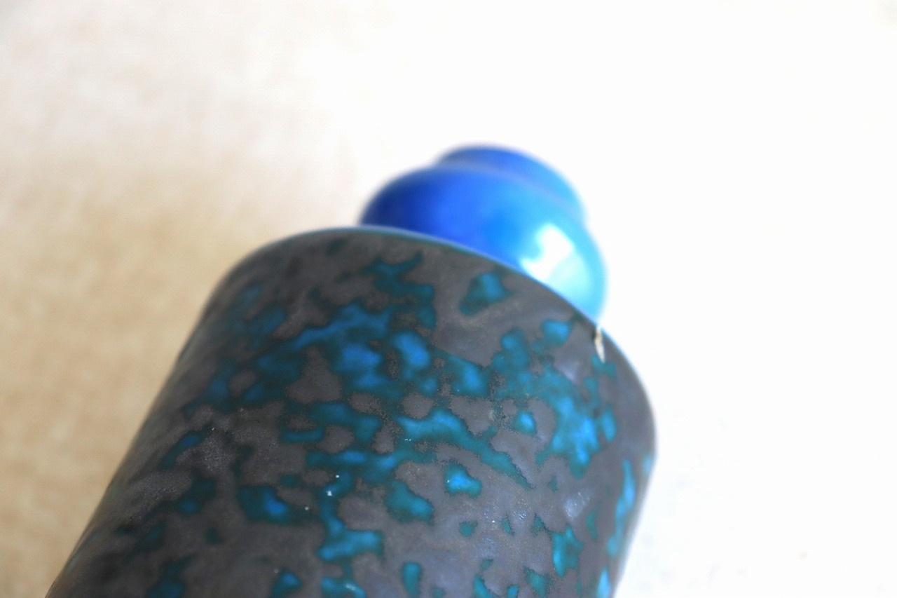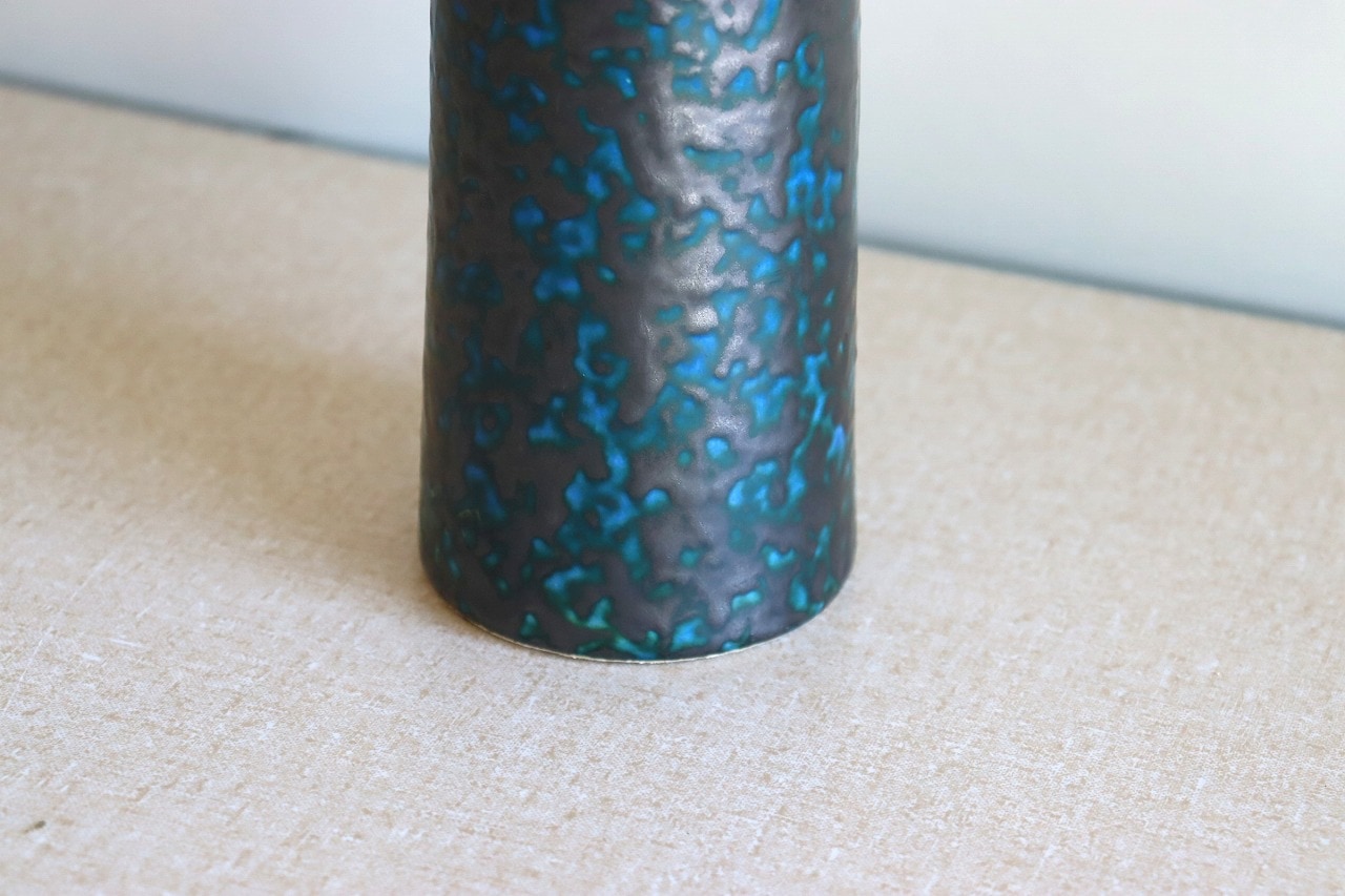 こちらはドイツのStrehla社製のフラワーベースです。ミッドセンチュリー期にドイツで作られた花瓶には、fat lavaと呼ばれる手法が使われていました。fat lavaとは分厚い溶岩の意味。西ドイツの独特な釉薬の風合いからそう呼ばれていました。