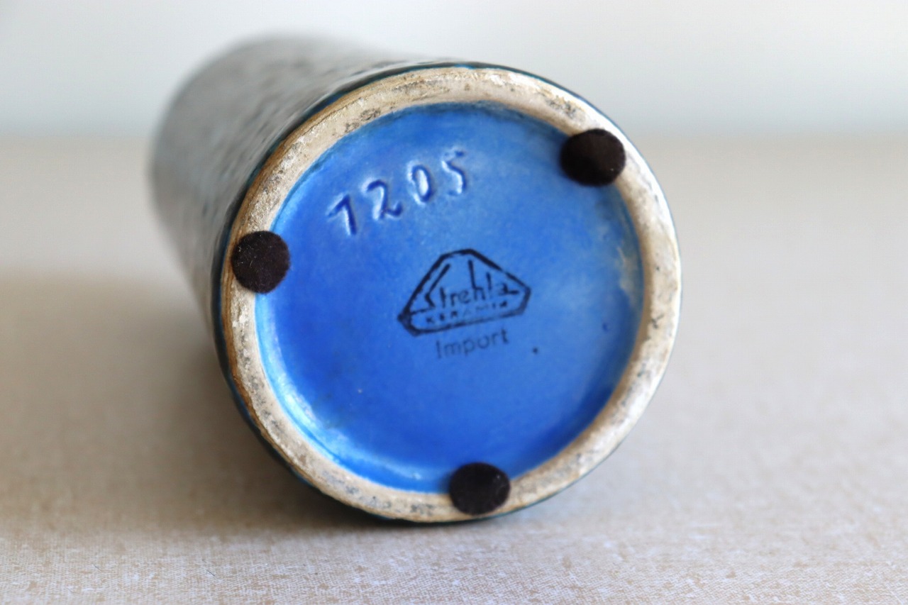 ポタリーフラワーベース。Strehla社製の花瓶です。Strehlaの作品はチューブで裏打ちされたFat Lava釉薬を使用した装飾が特徴です。