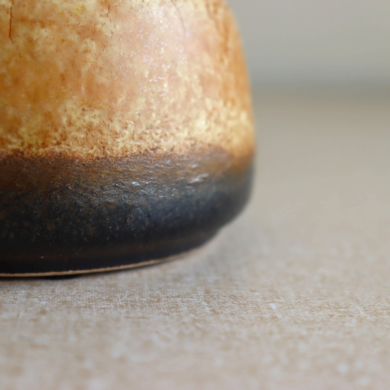 小ぶりでぽてっとしたフォルムがとても可愛らしいこちら。オード色のグラデーションが美しく、まるでミルクを注いだコーヒーのよう。下から1cmほどはブラックの配色です。