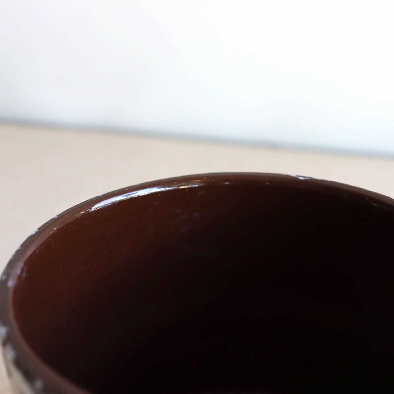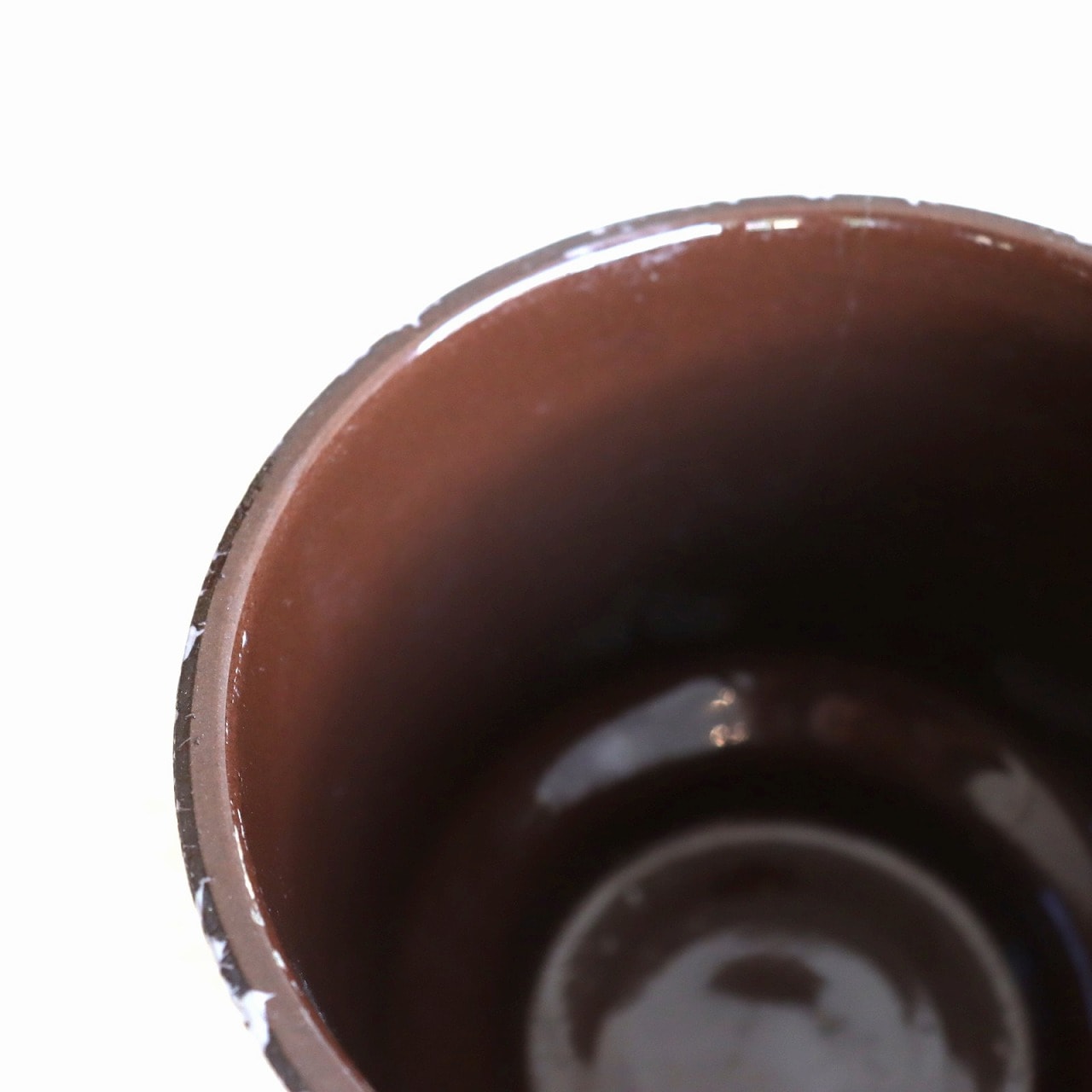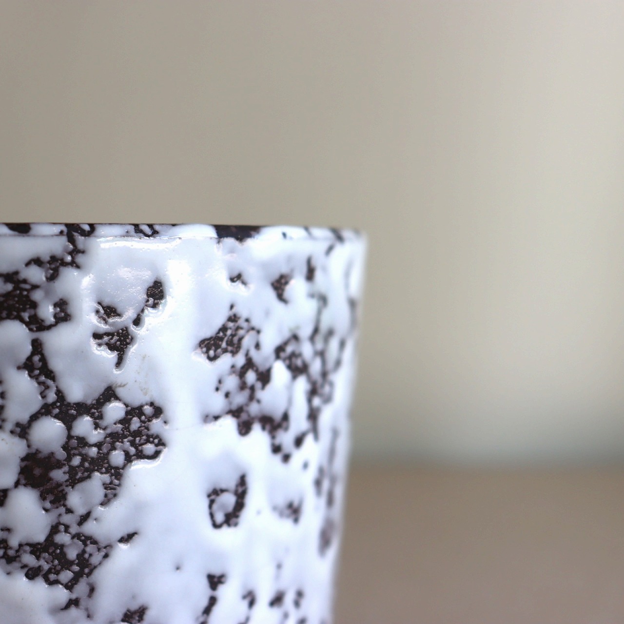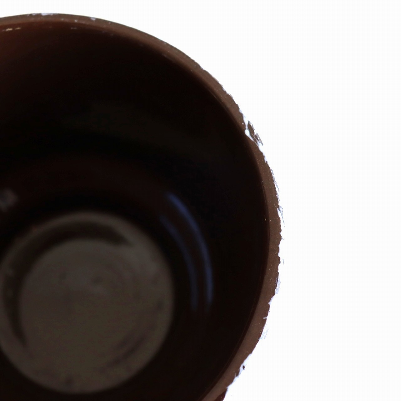 ダークブラウンのベースにオフホワイトの釉薬のこちら。チョコレートに砂糖をまぶしたお菓子のような表面で、植物が映える脇役として活躍しそうです。