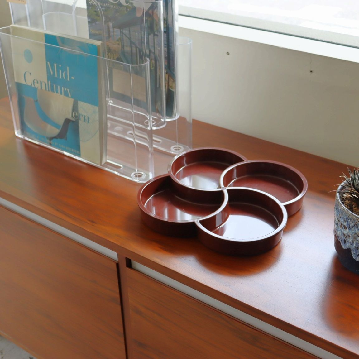 4つのポケットからなるプレスチックトレー。幾何学的でありながら、四葉のクローバーのような植物やお花もイメージされるデザインですね。