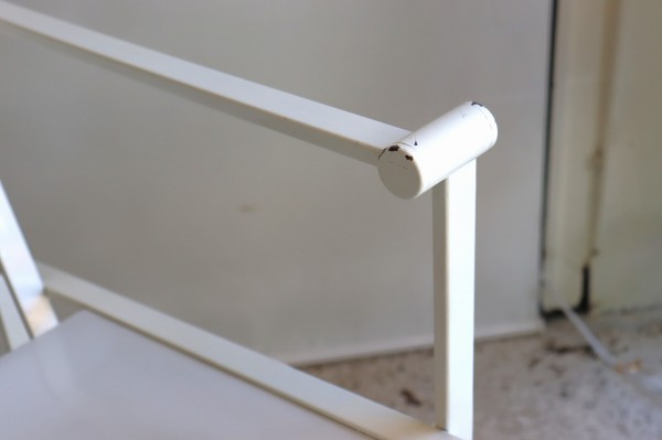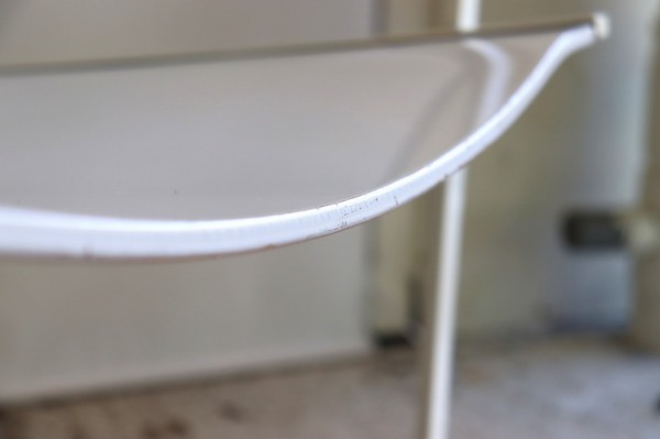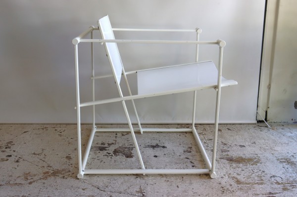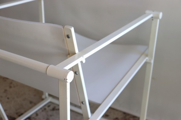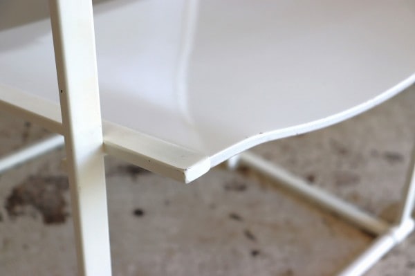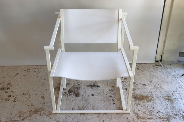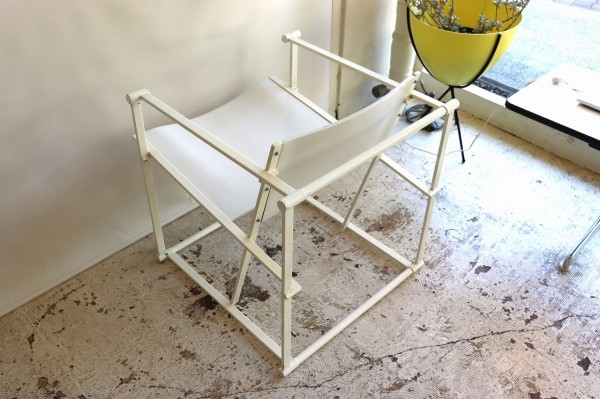 610mm角のキューブ型のフレームをベースに構成され、座面と背面はプライウッドに白塗装です。座面が深く、傾斜もかかっているため、見た目に反してゆったりとした座り心地も魅力の一脚です。