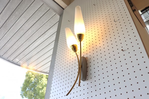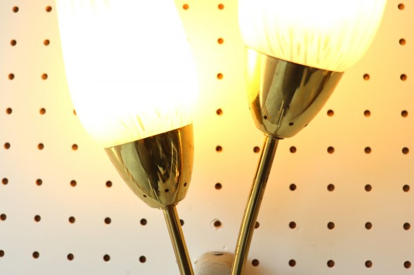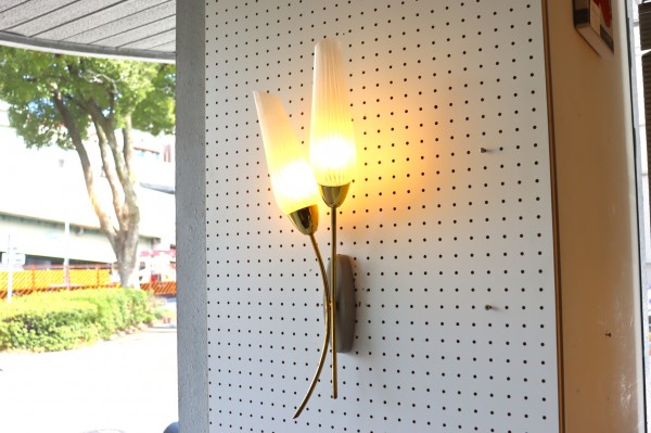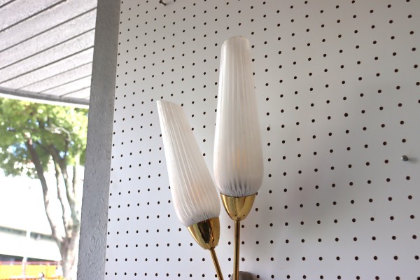 2灯ガラスブラケットランプ。ガラスシェードが2つついた壁付けのランプ。