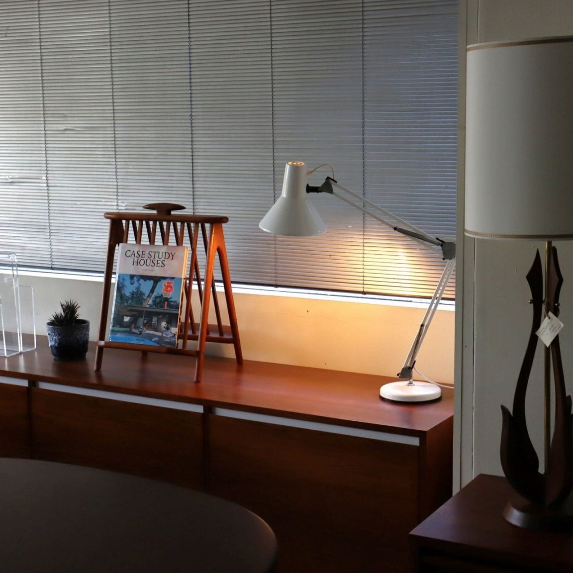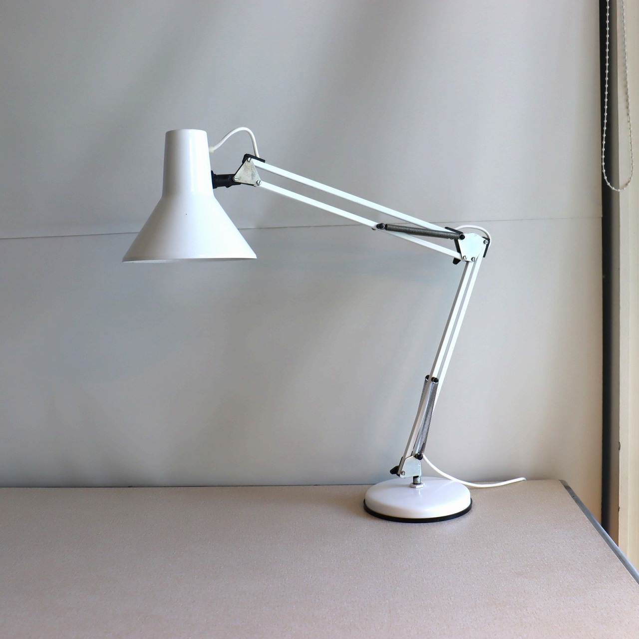 スポットタイプのシェード可動式のアームにベースが組み合わさったデザイン。シンプルで無駄なものをそぎ落としたような佇まい。