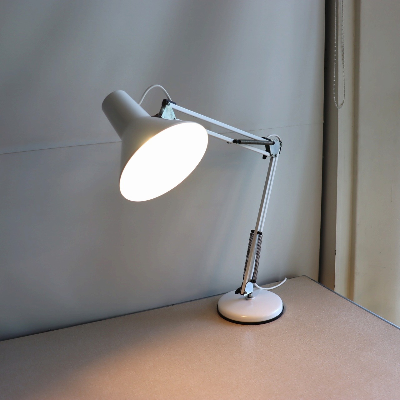可動部分は3カ所ありネックも左右に振れるので、360°照らすことが出来ます。デスク用のランプとしてはもちろん壁面やポスターなど壁面を照らして間接照明として使ってもいいかも。
