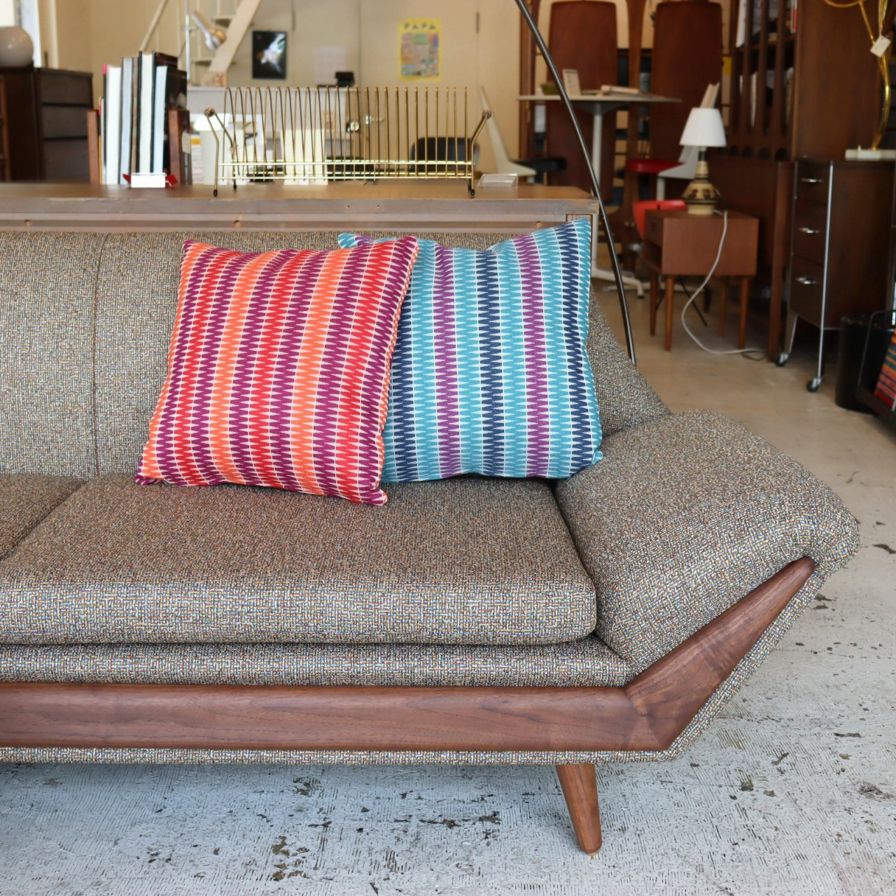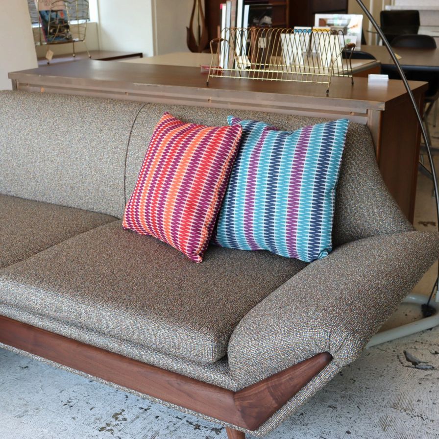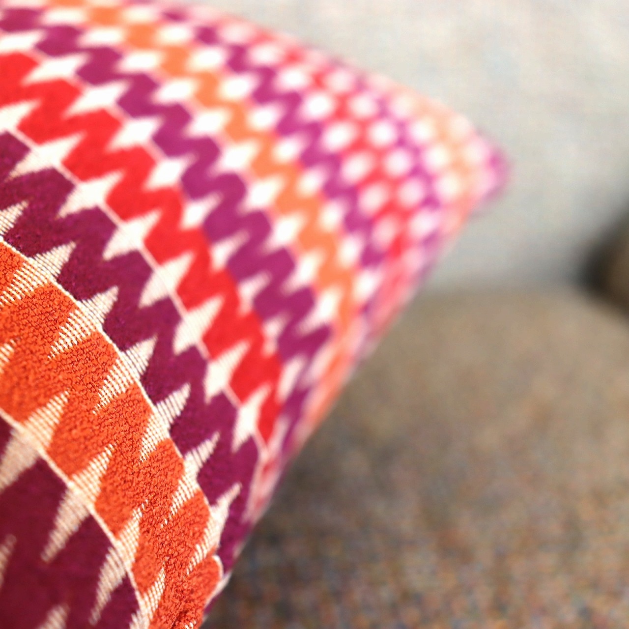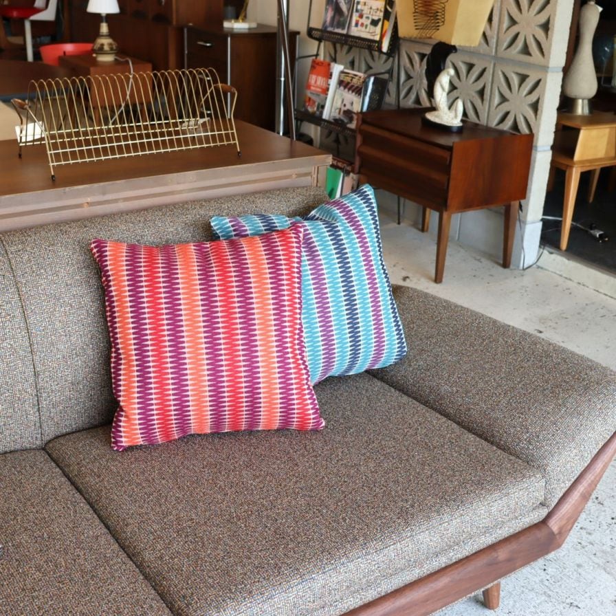 クッション。アメリカで仕入れたファブリックで製作したクッションカバーとヌードクッションのセットです。